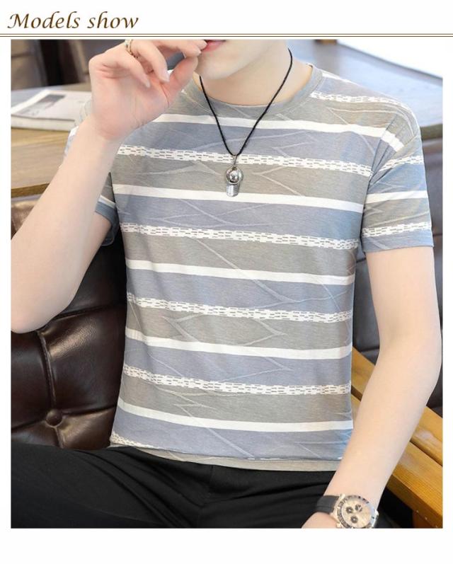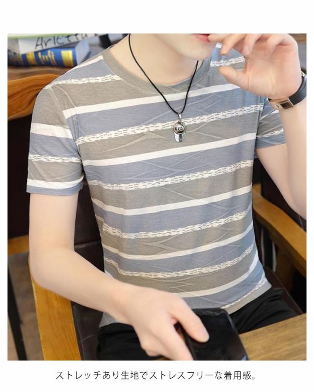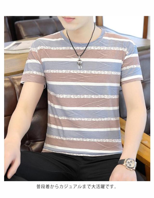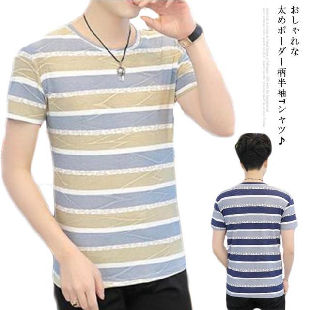 ボーダー Tシャツ 半袖 メンズ トップス 半袖tシャツ カットソー ラウンドネック 着痩せ 大きいサイズ ボーダー 涼しげ カジュアル 夏 送料無料 韓国風 おしゃれ S M L XL 2XL 3XL