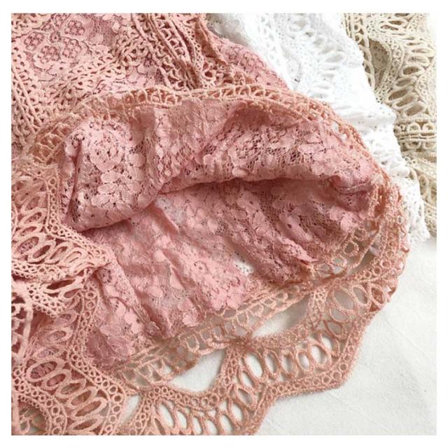| 花柄レースで透け感のあるトップスが登場です? ほどよい透け感と花柄レースが女らしくカジュアルな抜け感に。 さらっとした着心地で、春夏にピッタリ♪ エレガントなデザインコーディネートも楽。 | |