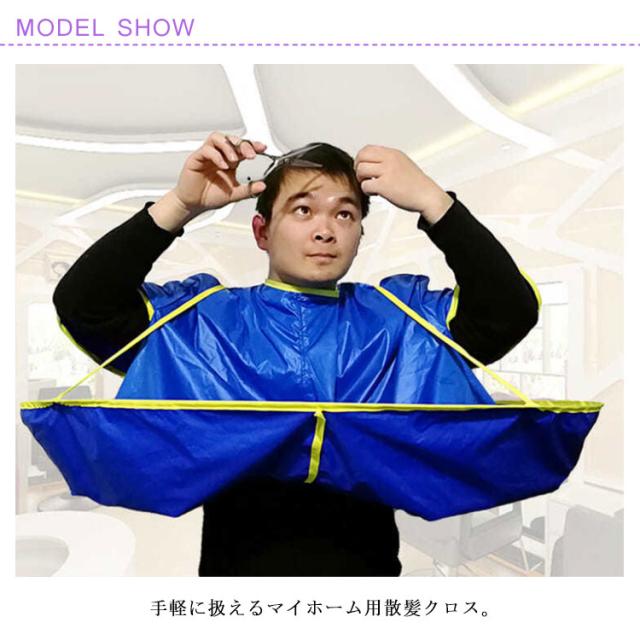 | 手軽に扱えるマイホーム用散髪クロス。 360度覆うケープが切った髪をキャッチしてくれるから、散らばりずらく後片付けラクチン。 すっぽりかぶってマジックテープを止めるだけの簡単装着♪ セルフ毛染めにもいいかもしれません。 8の字型にねじり、コンパクトに収納が可能です。 | |