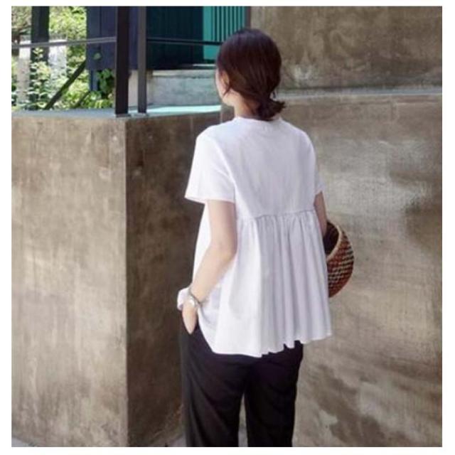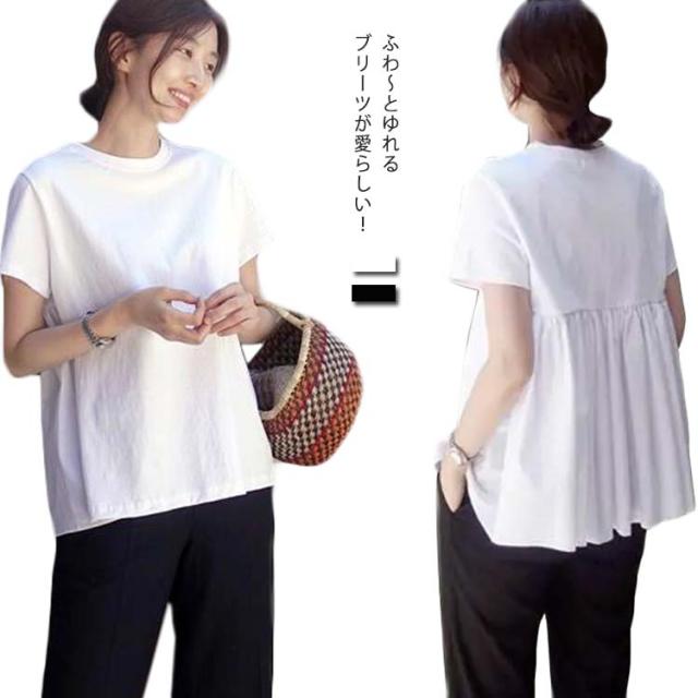 ブラウス 半袖 レディース エンボス加工 Tシャツ ロング 送料無料 ビッグ 上品 ホワイト 無地