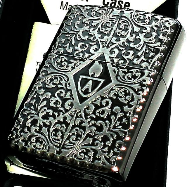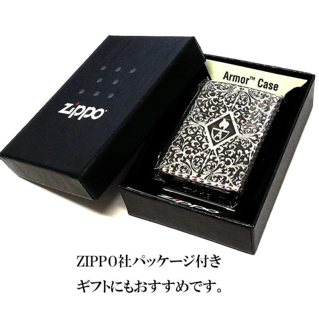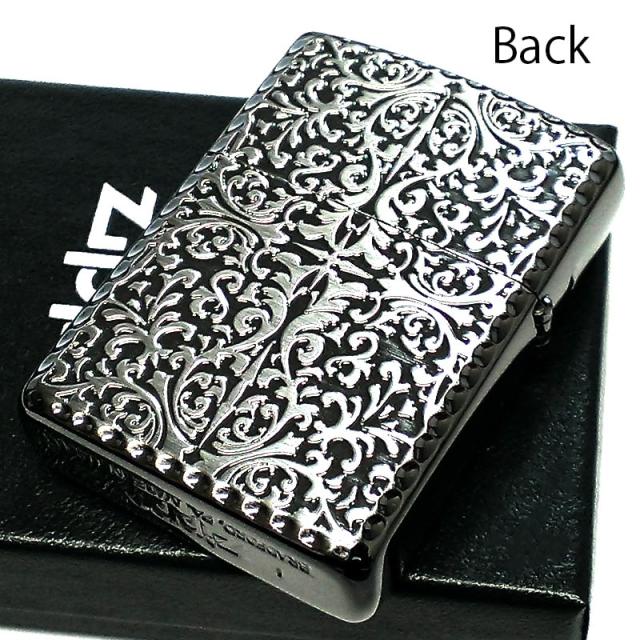 ZIPPO 黒銀 中世模様 重厚アーマー 両面アラベスク ジッポライター ブラックサテン&シルバーサテン