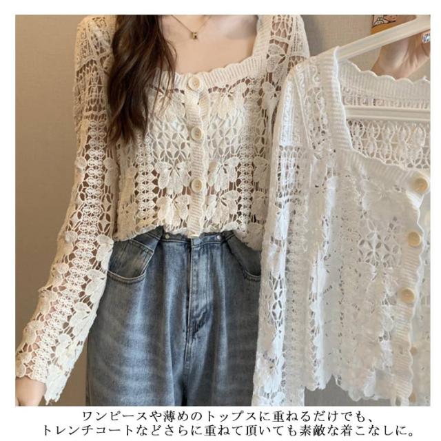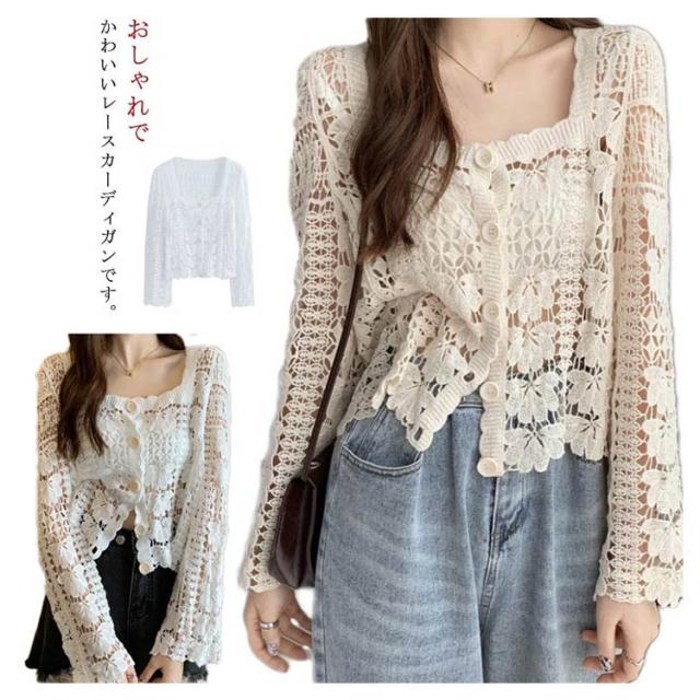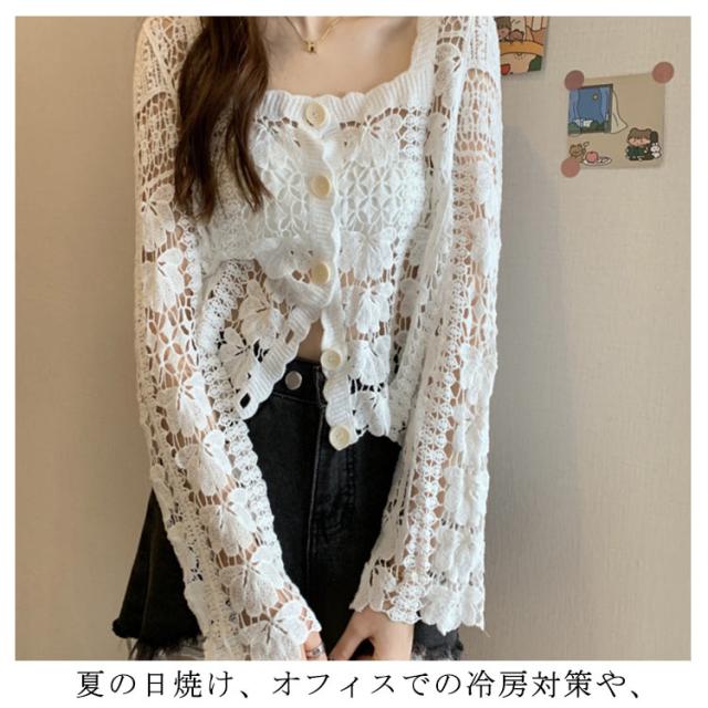 送料無料 カーディガン レディース 薄手 総レース 羽織り 花柄 刺繍 ガウン 個性 オシャレ アウター 水着 UVカット 日焼け 冷房対策 かわいい 新作