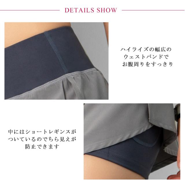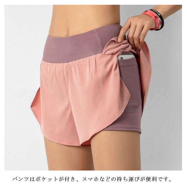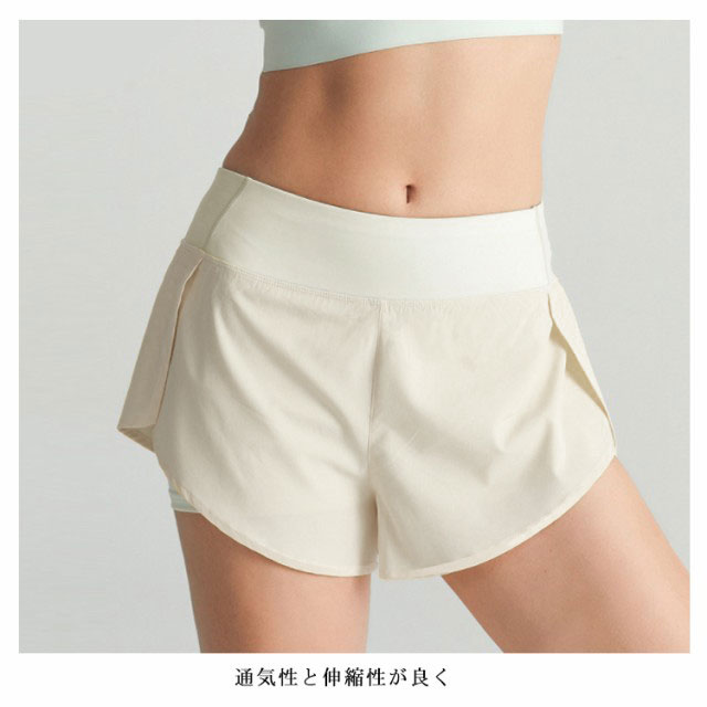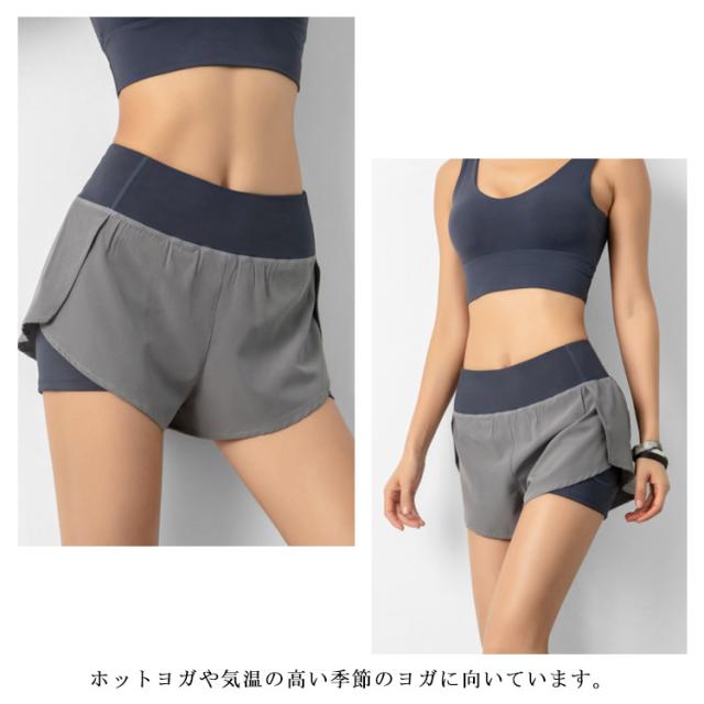 | 吸水速乾素材でホットヨガにおすすめなショートパンツ。 吸水速乾素材を使用しており、通気性が良くさらっとした着心地。 パンツはポケットが付き、スマホなどの持ち運びが便利です。 ホットヨガや気温の高い季節のヨガに向いています。 中にはショートレギンスがついているのでちら見えが防止できます。 | |