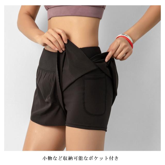ハイウエスト スポーツウェア 短パン ショートパンツ レディース 吸汗 速乾 アウトドア ランニング テニス ゴルフ インナーパンツ付き ヨガ 運動 通気性 イージーパンツ トレーニング カジュアル ダンス ゆったり 女性用