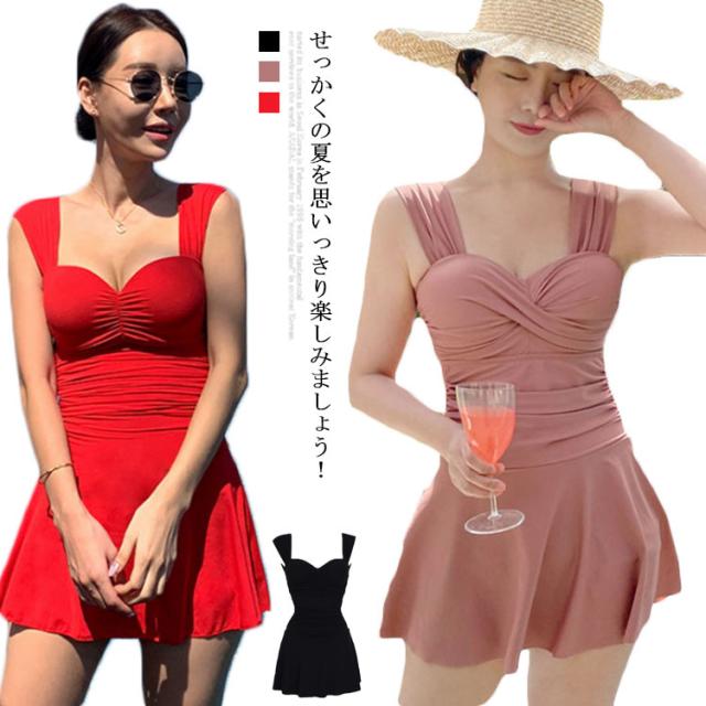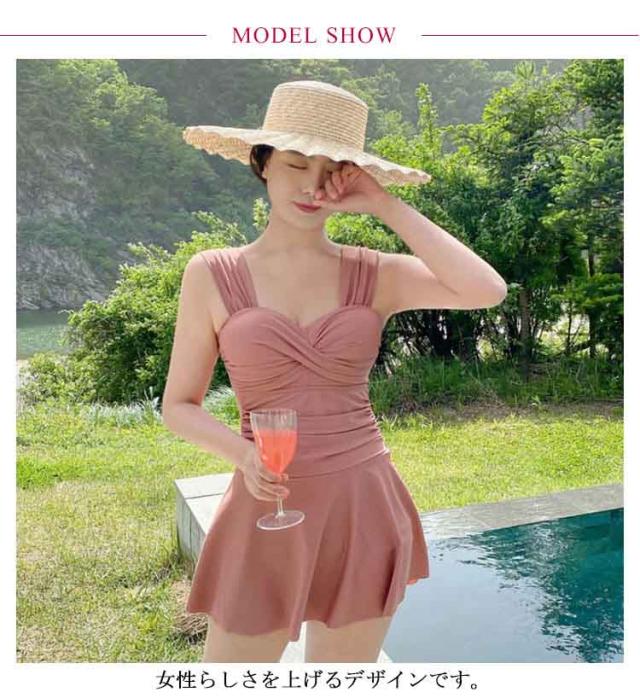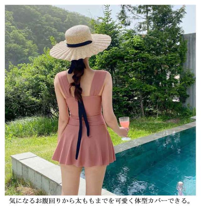 水着 体型カバー水着 レディース ワンピース オールインワン ママ水着 大きいサイズ ミセス 20代 30代 オトナ女子 胸元 お腹 お尻 太もも カバーアップ フレア 女性 露出控えめ