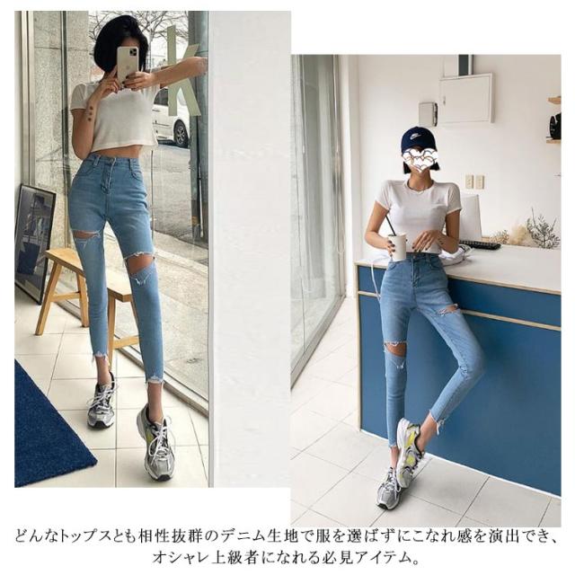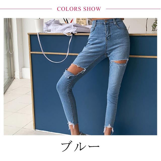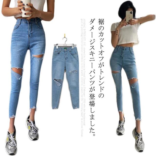 ダメージジーンズ ダメージデニム デニム ダメージ スキニーパンツ レディーススキニーパンツ スキニーデニム スキニージーンズ デニムパンツ スキニー 9分丈 春夏 小さいサイズ 大きサイズ クラッシュ ボトムス 美脚