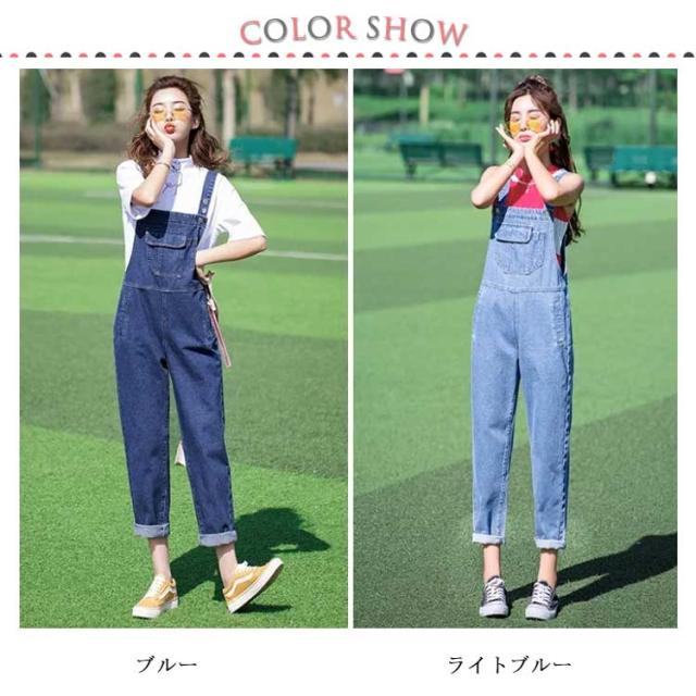 送料無料 サロペット レディース ブルーデニムサロペット オールインワン 大人可愛い ゆったり サルエルパンツ デニム オーバーオール ワイド ロング カジュアル デニム きれいめ ゆったり目