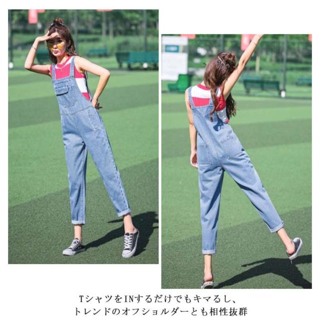 | デニムサロペットオールインワンパンツが登場 細身のシルエットだからSTYLE UP効果は期待大 TシャツをINするだけでもキマるし、トレンドのオフショルダーとも相性抜群 | |