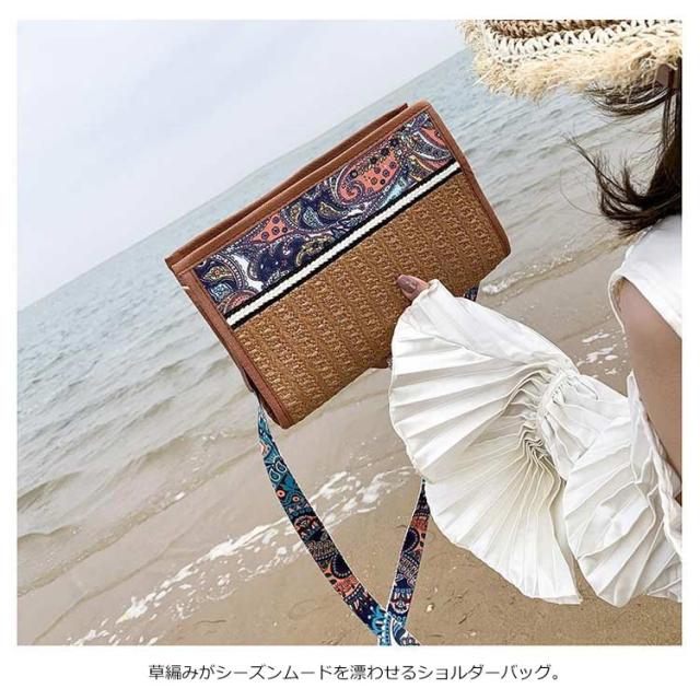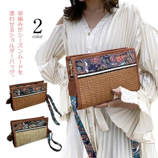 ショルダーバッグ レディース 草編みバッグ かごバッグ 2way 肩掛け 斜めがけ 編みバッグ メッシュバッグ かわいい 編み 斜め掛け ストローバッグ ビーチバッグ