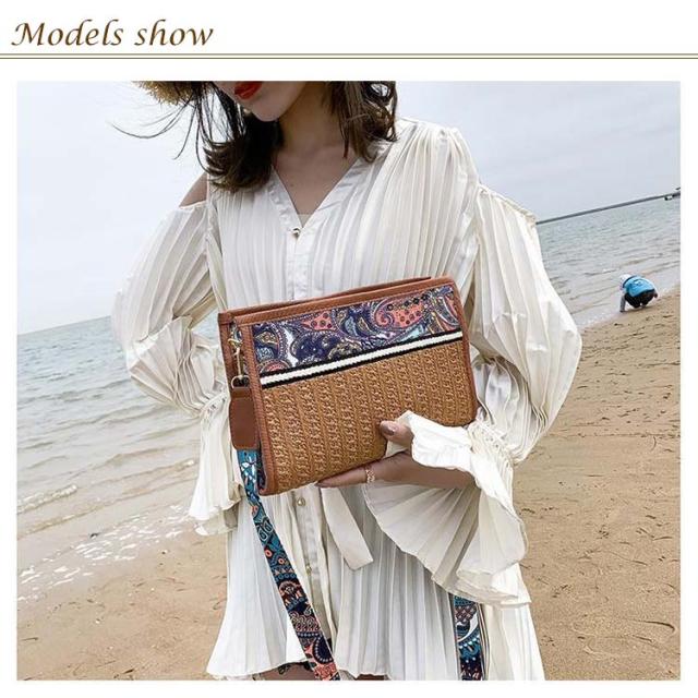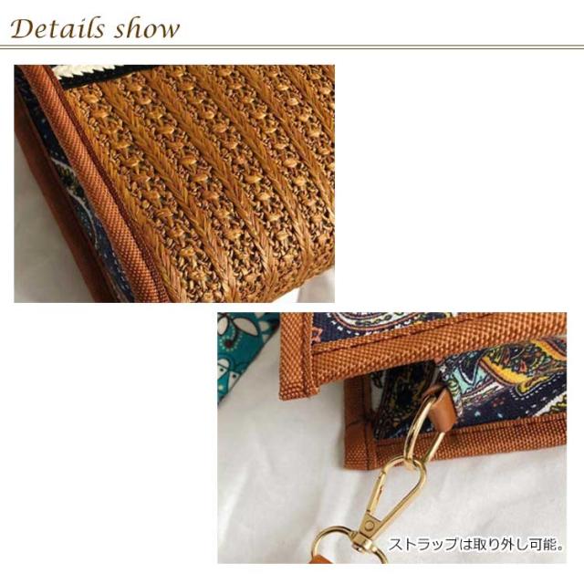 | 草編みがシーズンムードを漂わせるショルダーバッグ。 おしゃれな柄は大人の表情に魅せてくれます。 コンパクトなサイズなのに見た目以上の収納力で実用性もバッチリ。 旅行や出張、リゾート、通勤、お祭り、花火大会などシーンに活躍してくれるバッグです。 | |