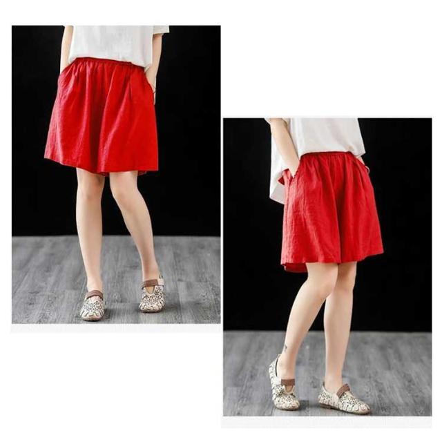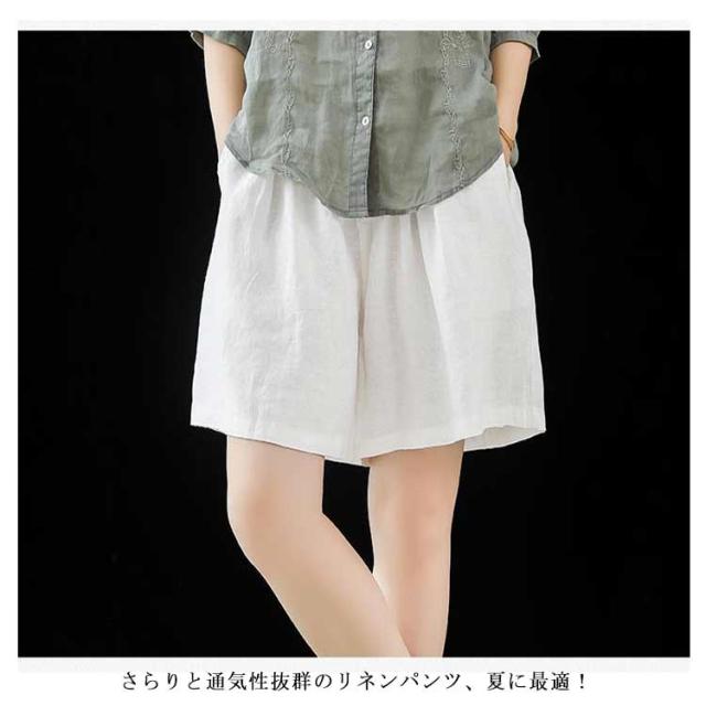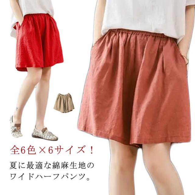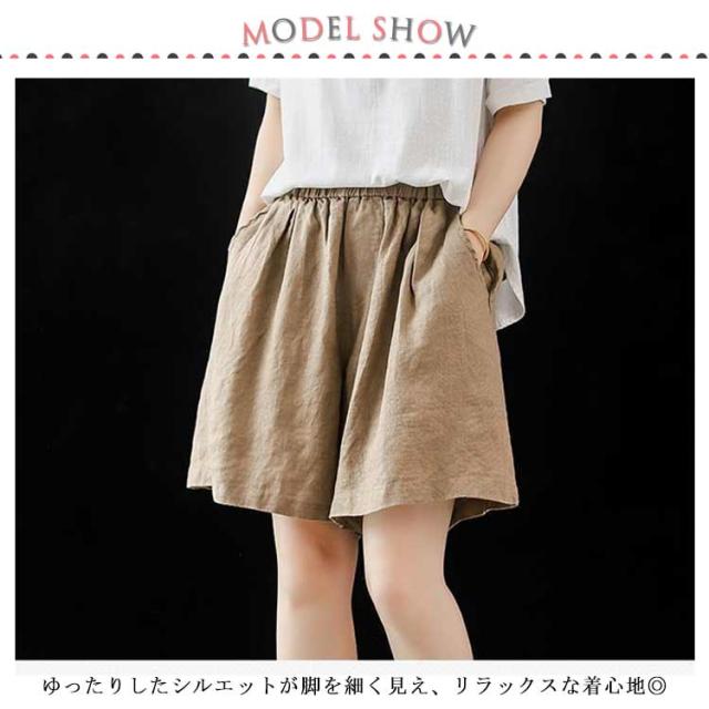 送料無料 ハーフパンツ ワイドパンツ レディース ガウチョパンツ ハイウエスト 膝丈 五分丈 リネンパン ウエストゴム ゆったり ワイド パンツ リネン 麻 綿麻 無地 お洒落 大きいサイズ