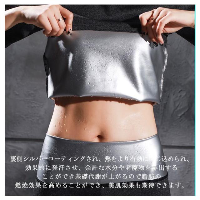 | 着るだけでダイエット!熱を逃さず、軽い運動でもシェイプUP効果抜群のサウナスーツ。 裏側シルバーコーティングされ、熱をより有効に閉じ込められ、効果的に発汗させ、余計な水分や老廃物を排出することができ基礎代謝が上がるので脂肪の燃焼効果を高めることができ、美肌効果も期待できます。 伸縮性抜群の素材を採用し、身体の動きを妨げず、ズレにくく、美しい引き締めボディを作り上げます。 ジョギング、ウォーキング、ヨガなどスポーツだけでなく、家事、お買い物、お散歩など着るだけで数倍のダイエット効果! | |