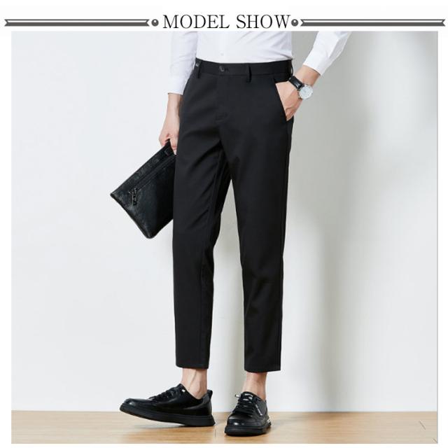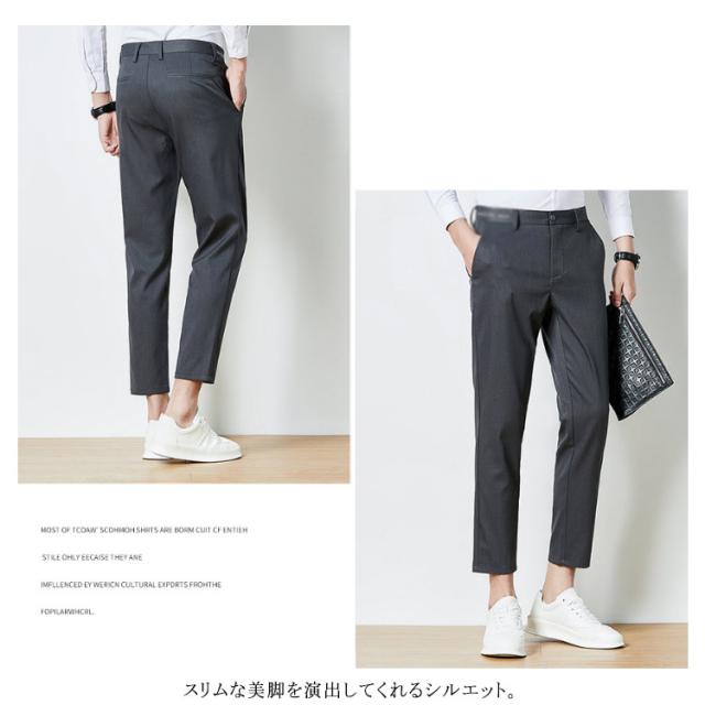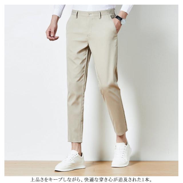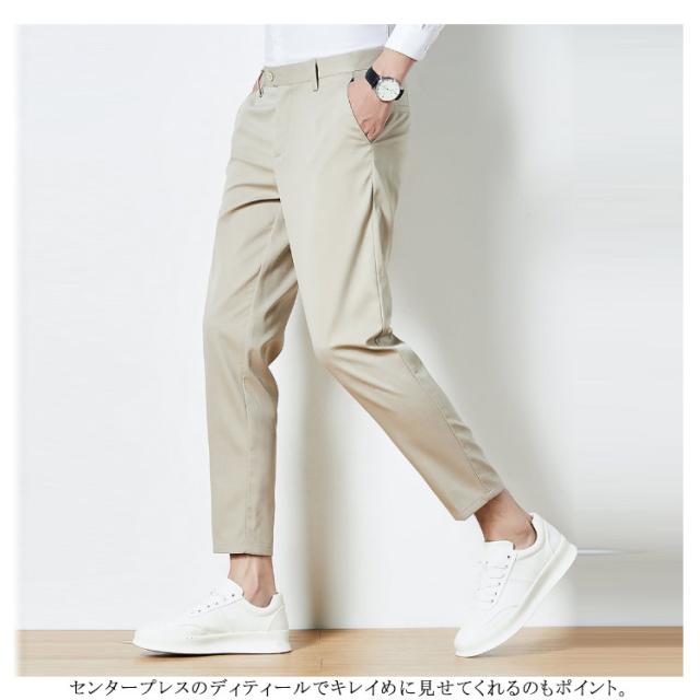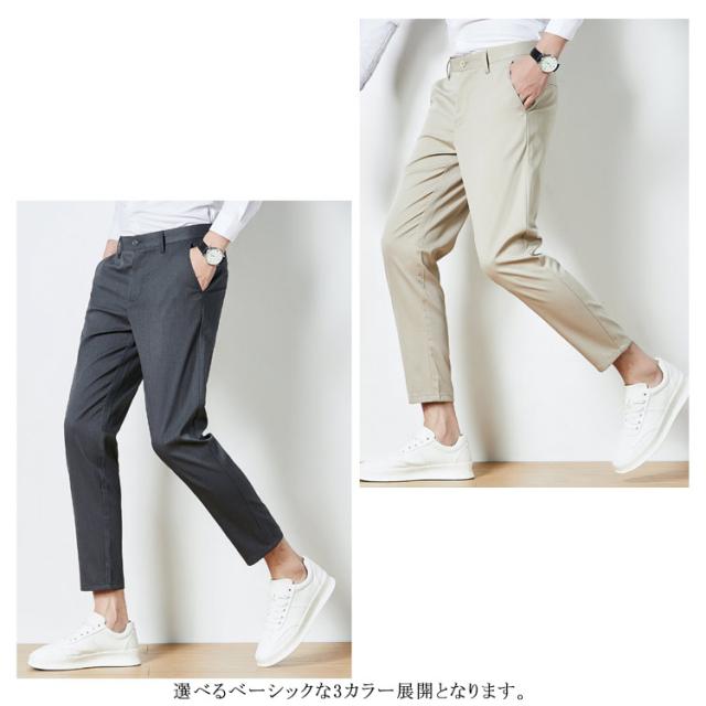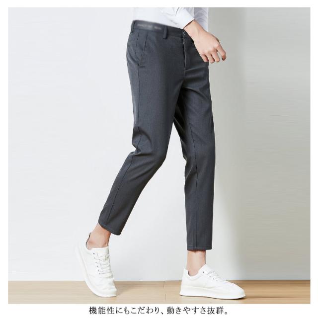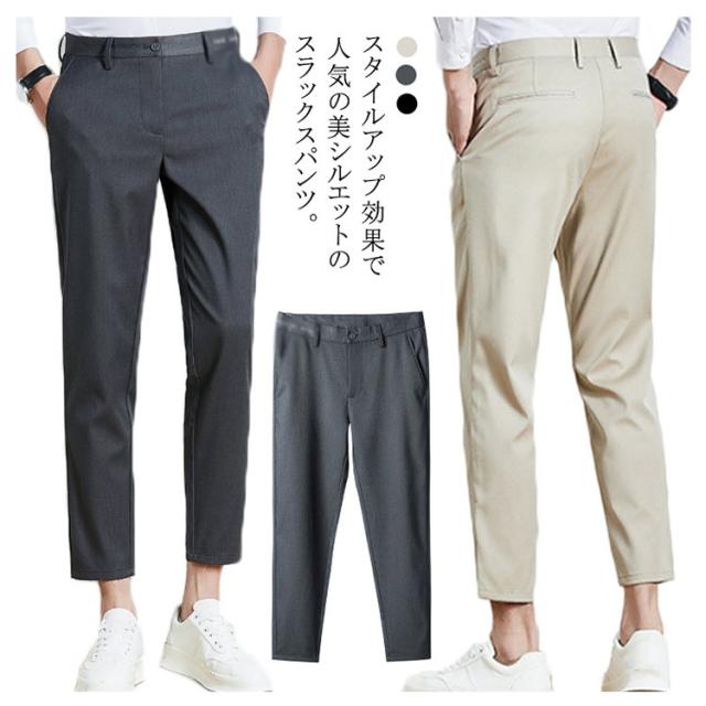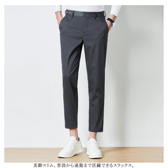 送料無料 スラックス メンズ 九分丈パンツ 9分丈スラックス パンツ 長ズボン カジュアルパンツ スキニーパンツ ロングパンツ 無地 薄手 春夏 ビジネス オフィス ノータック ボトムス シンプル カジュアル 普段着 通勤 お洒落 美脚 スリム