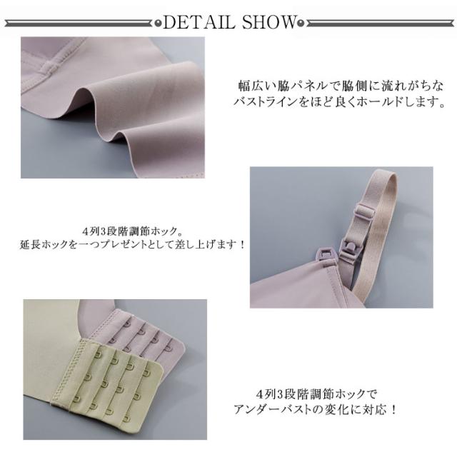 | 乳腺を圧迫しないノンワイヤーブラ。 柔らかくて着け心地が良く、伸縮性が抜群です。 肩のストラップは片手で開閉ができて、片手で簡単授乳。 立体カップで授乳期だって美胸キープ。産後の垂れやすい胸を支えます。 4列3段階調節ホックでアンダーバストの変化に対応! サイズが変化しやすい妊娠中から産後まで長くご使用いただけます。 | |
