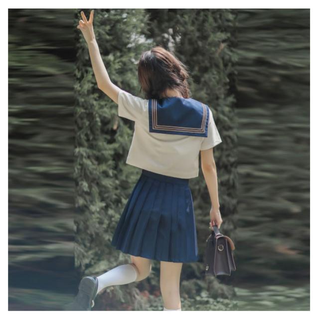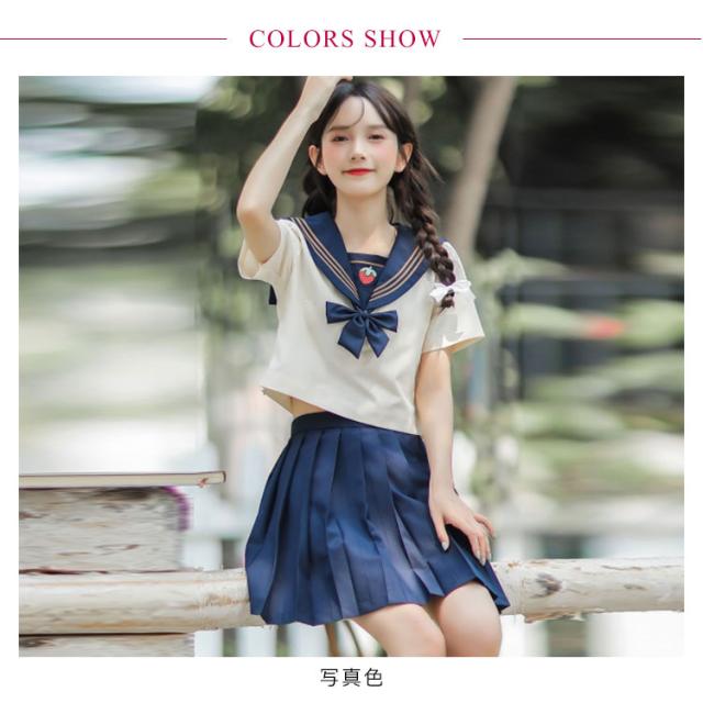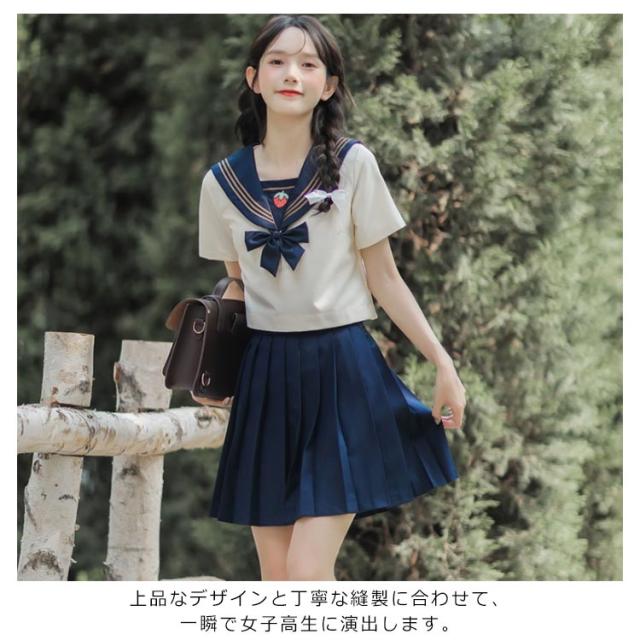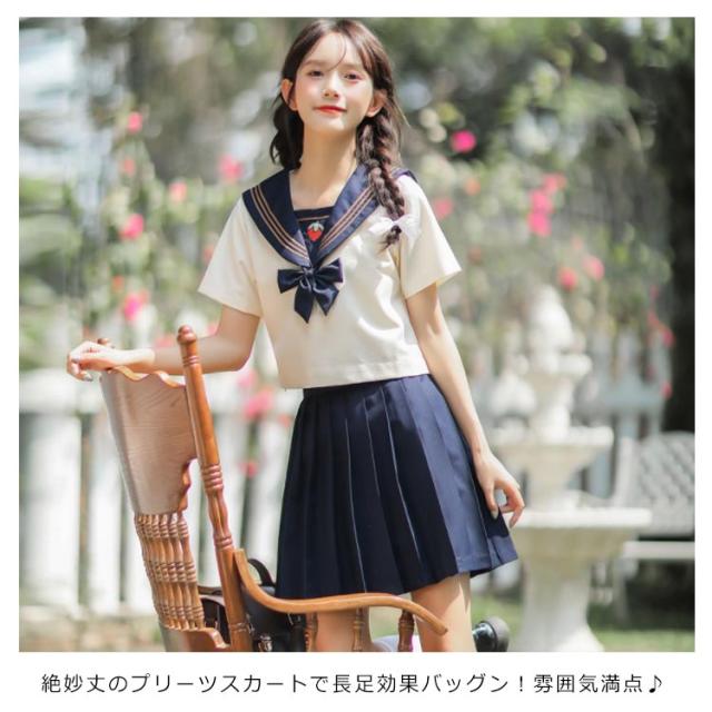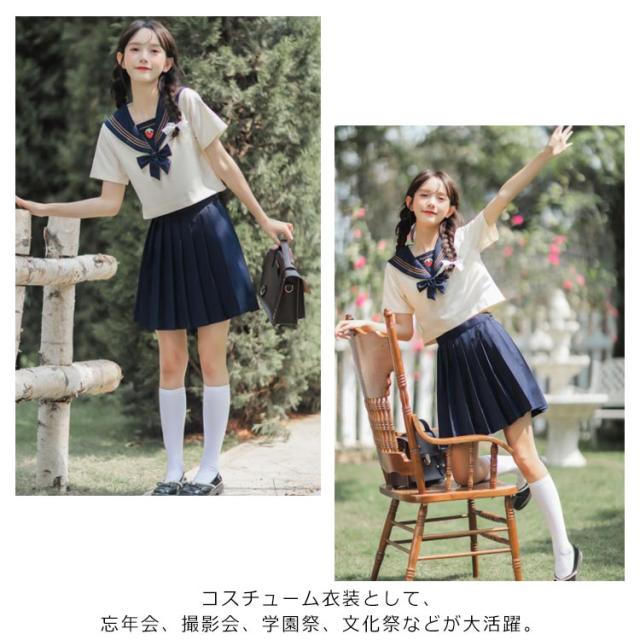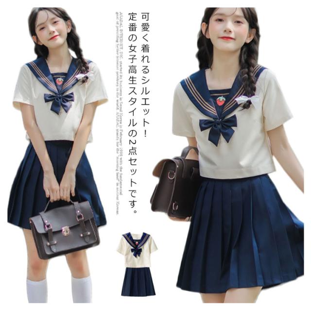 セーラー服 半袖 制服 学生服 高校生 女子制服 スクール風 上下セット コスチューム 2点セット 刺繍 蝶結び 可愛い JK制服 コスプレ 学園祭 文化祭 仮装 春夏