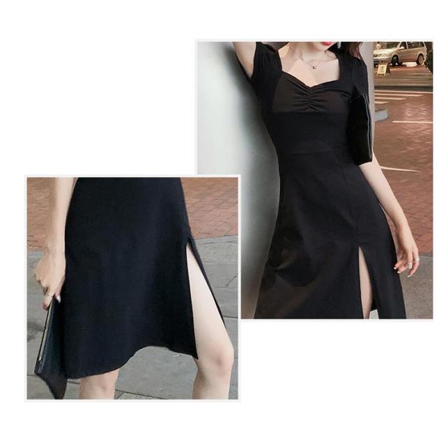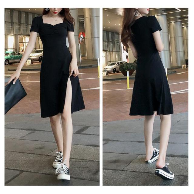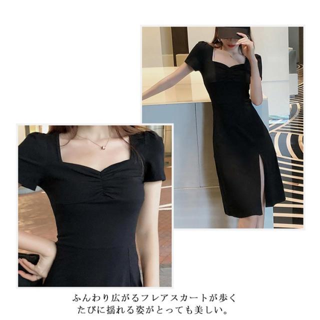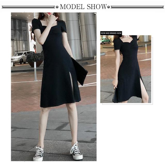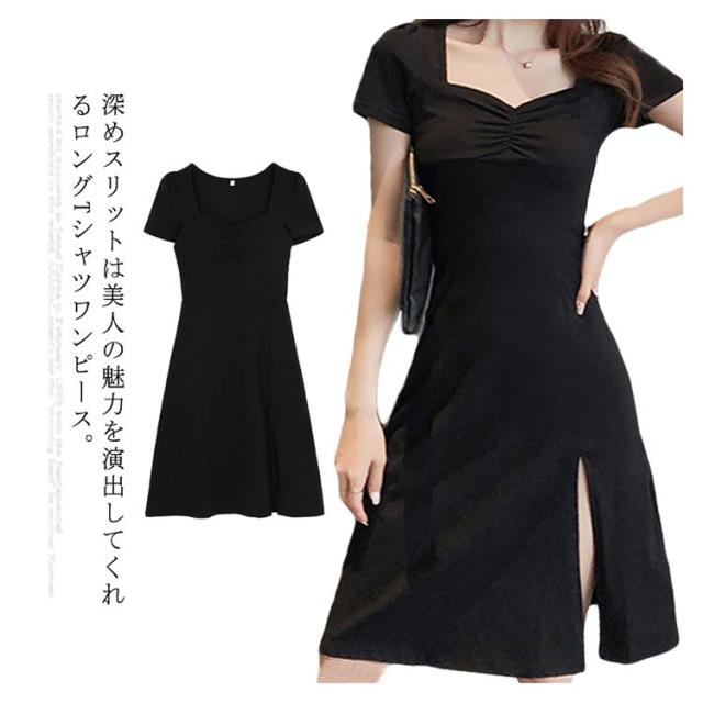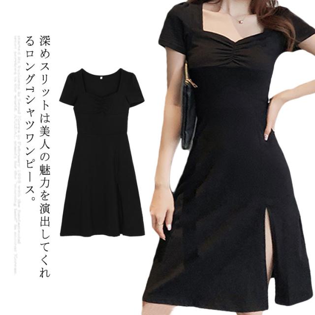 送料無料 ワンピース Tシャツワンピース レディース トレンド感満載 深めスリット 薄手 ストレッチ カットソー チュニック 体型カバー フレア ロング ワンピース 膝丈 半袖 大きいサイズ カジュアル