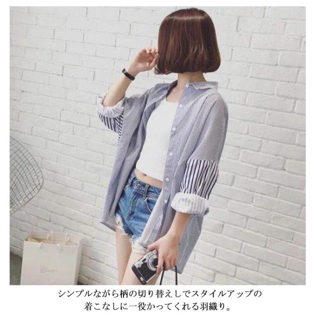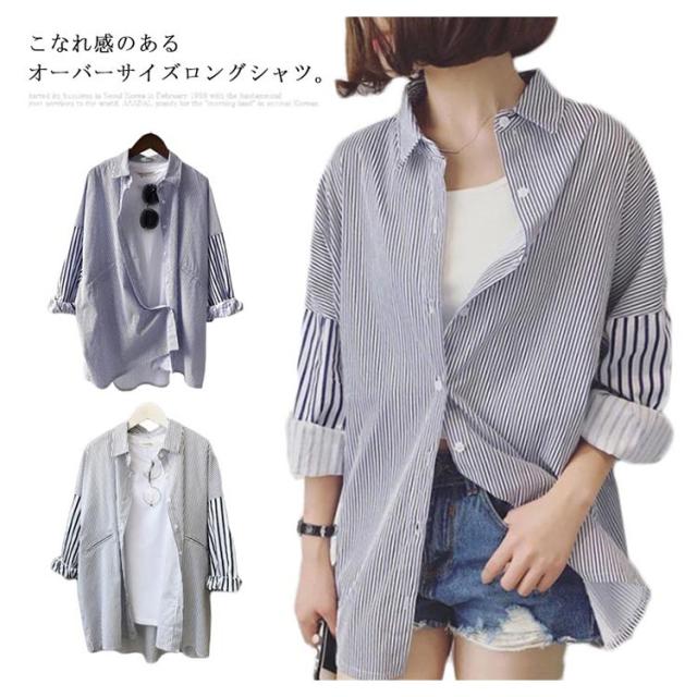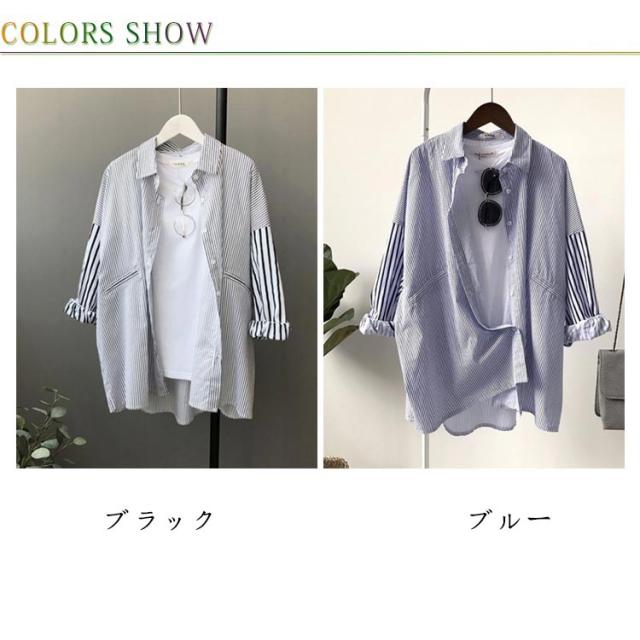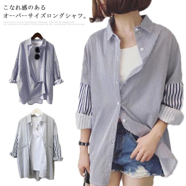 シャツ オーバーサイズ ビックシルエット 長袖 ブラウス トップス レディース 送料無料 横縞 縦縞 韓国ファスナー チュニック 羽織り 春夏 冷房対策 シャツブラウス 体型カバー 秋
