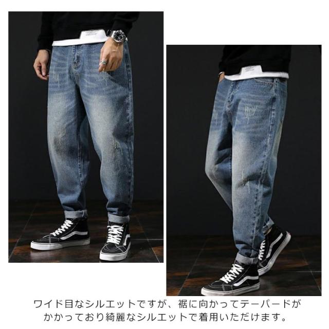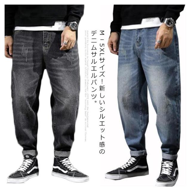 M−5XLサイズ!サルエルパンツ メンズ デニム サルエルデニムパンツ デニムパンツ デニム サルエルパンツ ウォッシュ加工