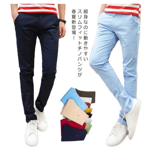 全11色のカラバリ展開!チノパン メンズ ストレッチ スリムパンツ スキニー スキニーパンツ テーパードパンツ カラーパンツ ボトムス チノ ロングパンツ 薄手 無地 細身 春 夏 秋 綿混送料無料