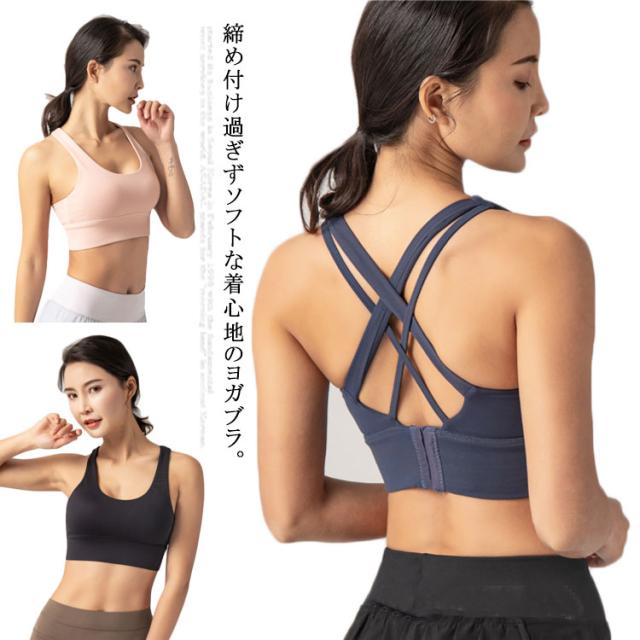 送料無料 スポーツブラ レディース ヨガブラ ノンワイヤー パッド付き 揺れない 美背 クロスバック デイリー ナイトブラ ヨガウェア フィットネス 後ろホックタイプ スポブラ
