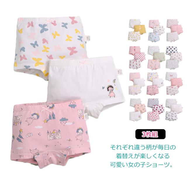 全12タイプ 3枚セット 女の子 下着 ボクサーパンツ ショーツ 子供服 100 110 120 130 140 150 送料無料 キッズ 小学生 幼稚園 入園準備 アンダーウェア ガールズ 肌着