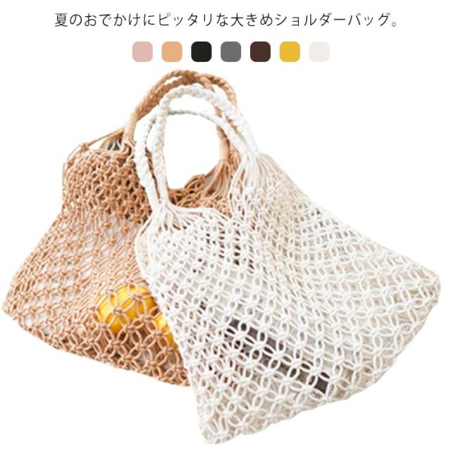 送料無料 カゴバッグ ショルダーバッグ レディース 手編み トートバッグ 編みバッグ メッシュバッグ ハンドバッグ 肩掛け かばん ストロー かばん カバン 鞄 小物収納 ストローバッグ