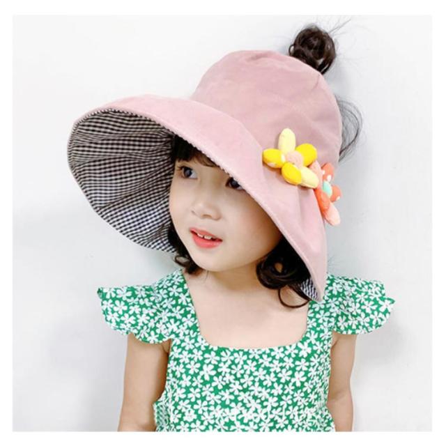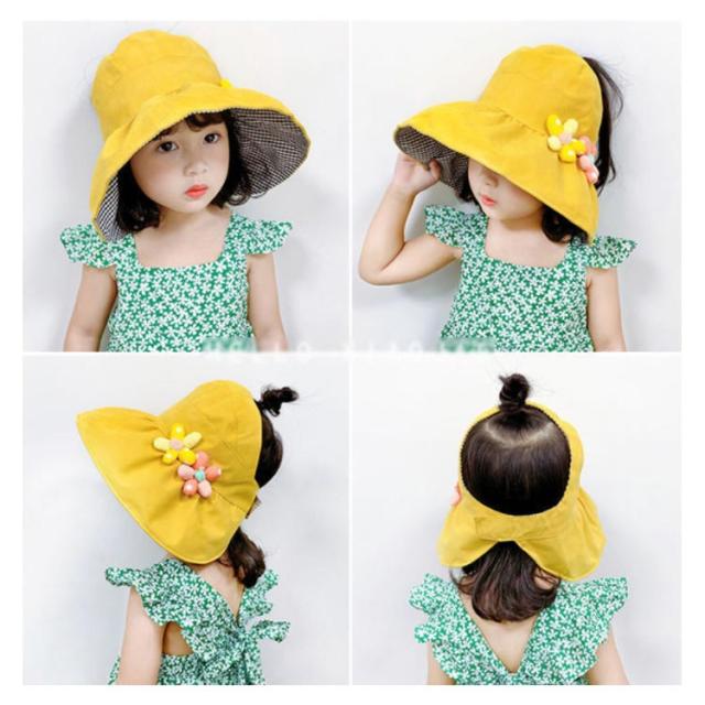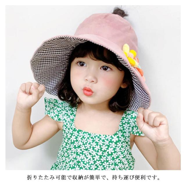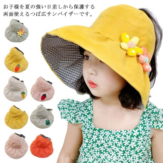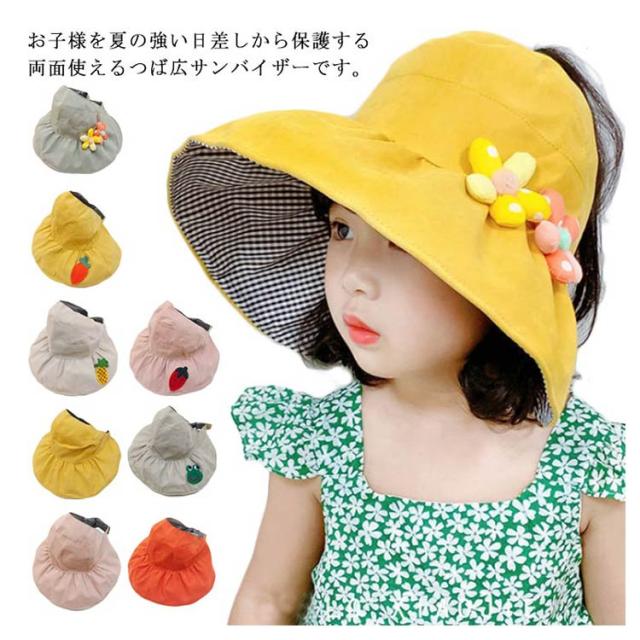 帽子 子供 サンバイザー キッズ つば広帽子 日よけ帽子 両面使える 折りたたみ 紫外線対策 UVカット 日除け 女の子 男の子 可愛い おしゃれ 送料無料 あご紐付 夏 アウトドア 帽子