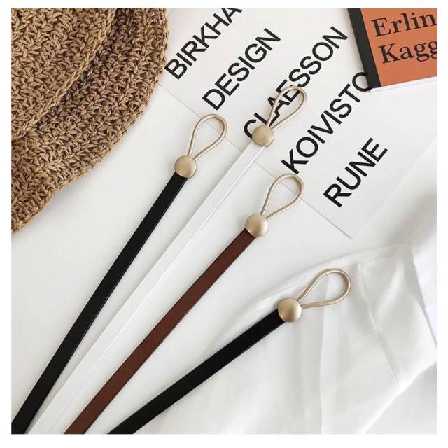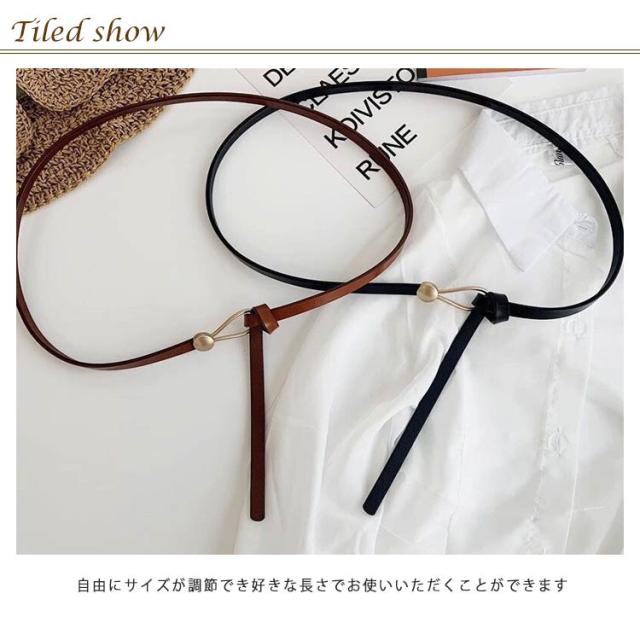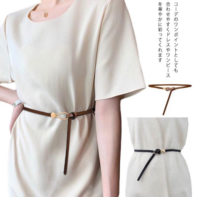 ベルト 細い 細め レディース ベルト穴なし 金具 長さ調整可 飾りベルト 送料無料 フェイクレザー ワンピース ゴールドバックル 金色バックル サークル アクセント 細見え 女性用 おしゃれ スカート コート