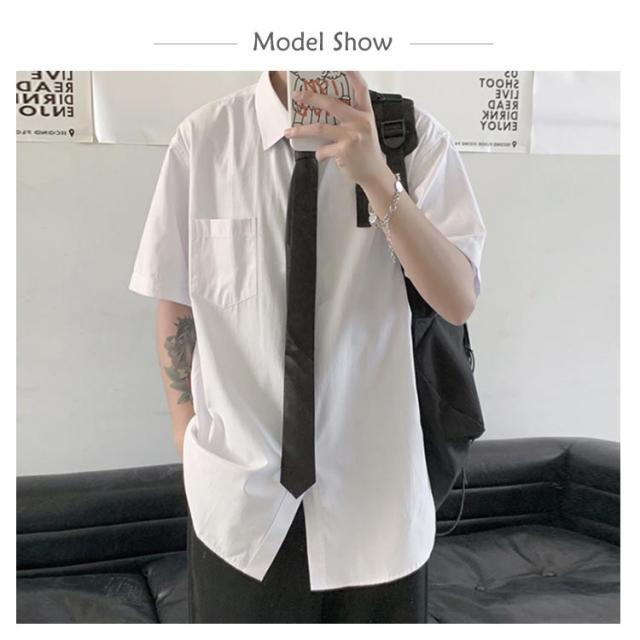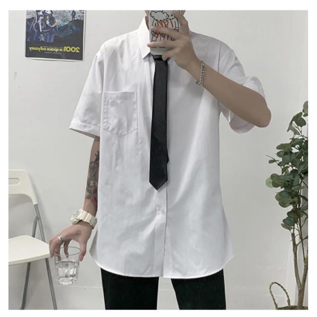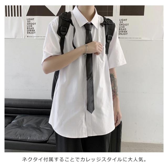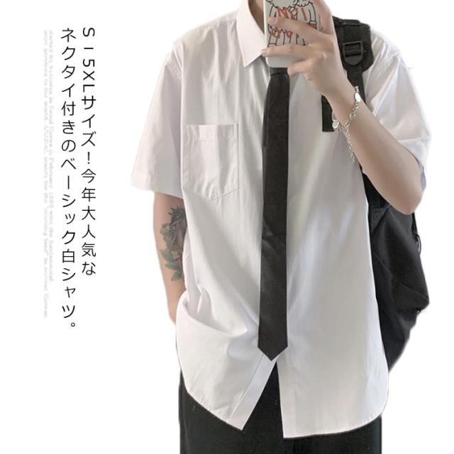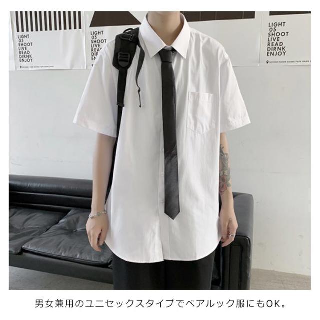 S−5XLサイズ!シャツ メンズ レディース 白シャツ 半袖シャツ 半袖 無地シャツ スクールシャツ ネクタイ付き 通学 高校生 ユニセックス カップル ベアルック 大きサイズ ファッション 夏 夏服 送料無料