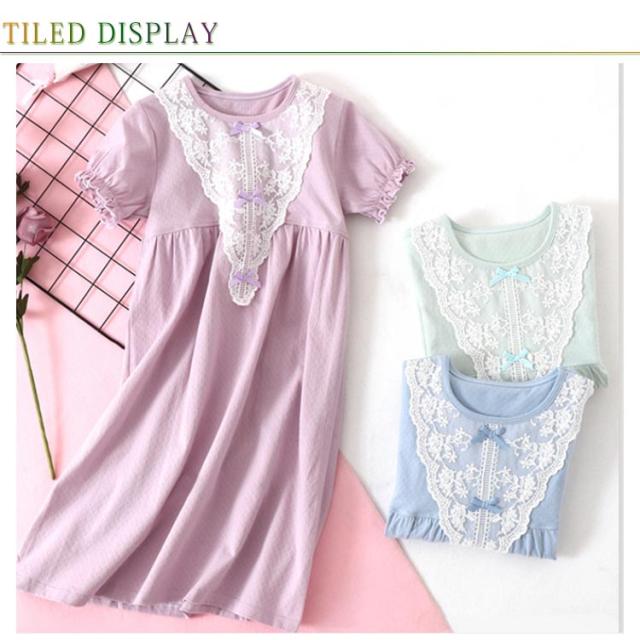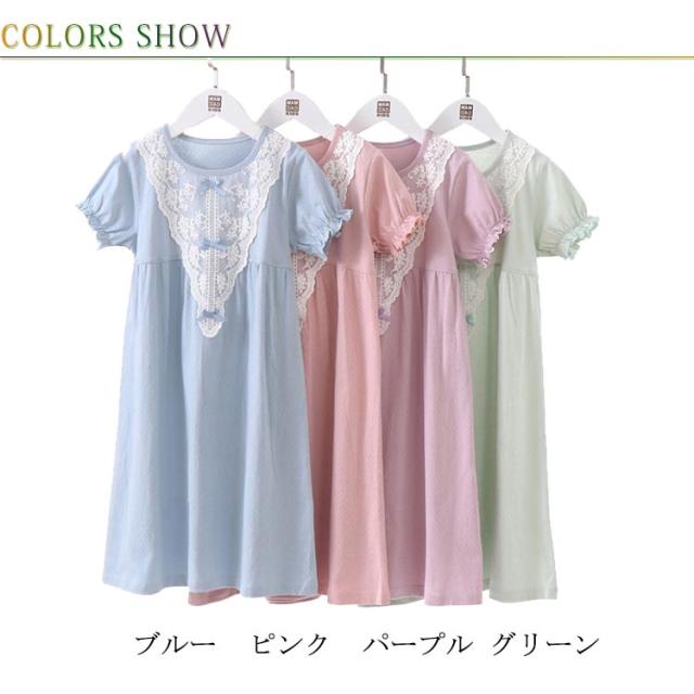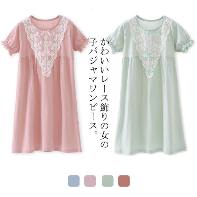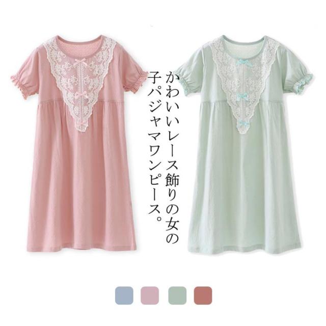 【送料無料】子供服 女の子 パジャマ ルームウェア ネグリジェ キッズ ワンピース 夏 半袖 レースワンピース リボン おしゃれ ロング丈 可愛い 部屋着 寝間着 寝巻き ジュニア 子供 保育園 女児 ルームウェア ナイトウエア かわいい 春 夏