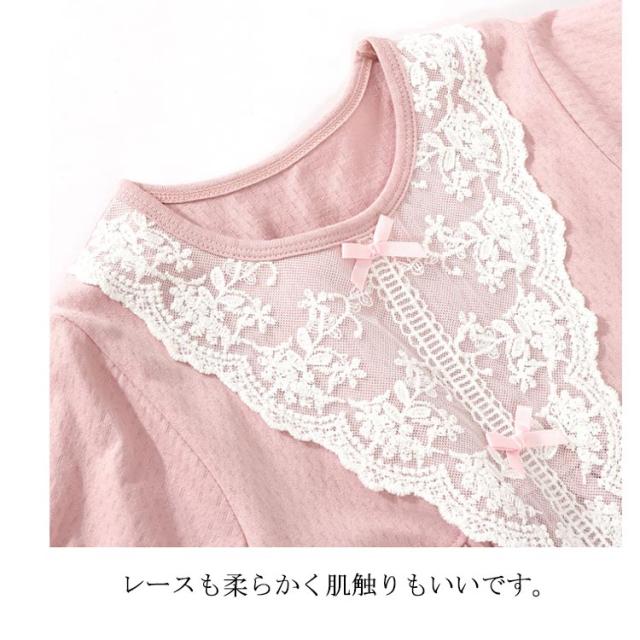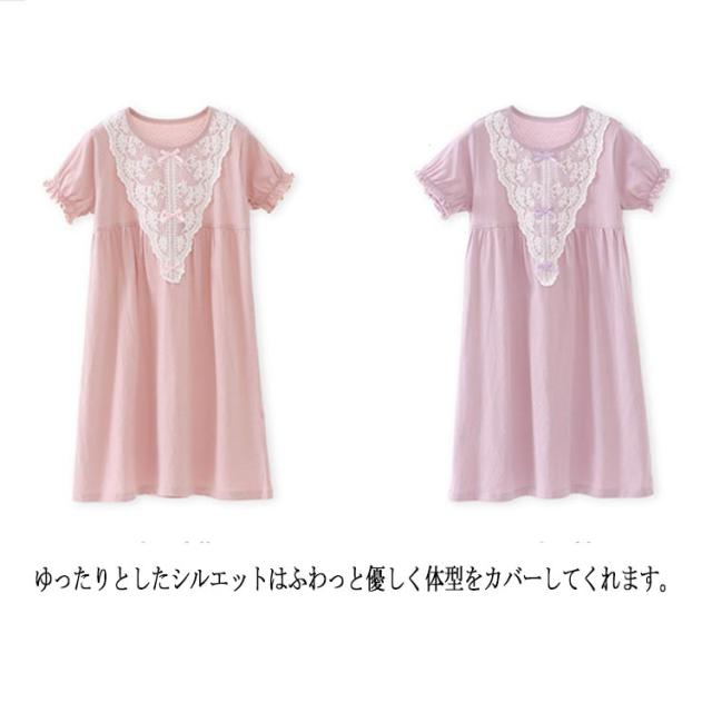 | かわいいレース飾りの女の子パジャマワンピース。 涼しげなシャリ感のある綿混素材で夏は涼しく着られます。 レースも柔らかく肌触りもいいです。 ゆったりとしたシルエットはふわっと優しく体型をカバーしてくれます。 まるでプリンセスのような可愛らしいパジャマドレス。 | |