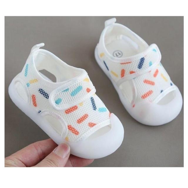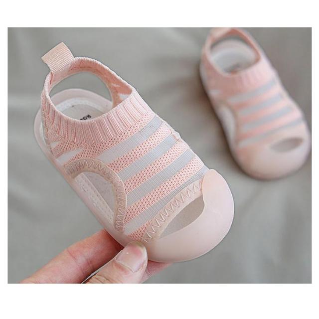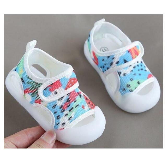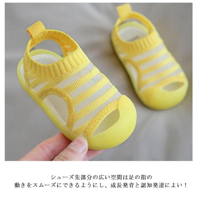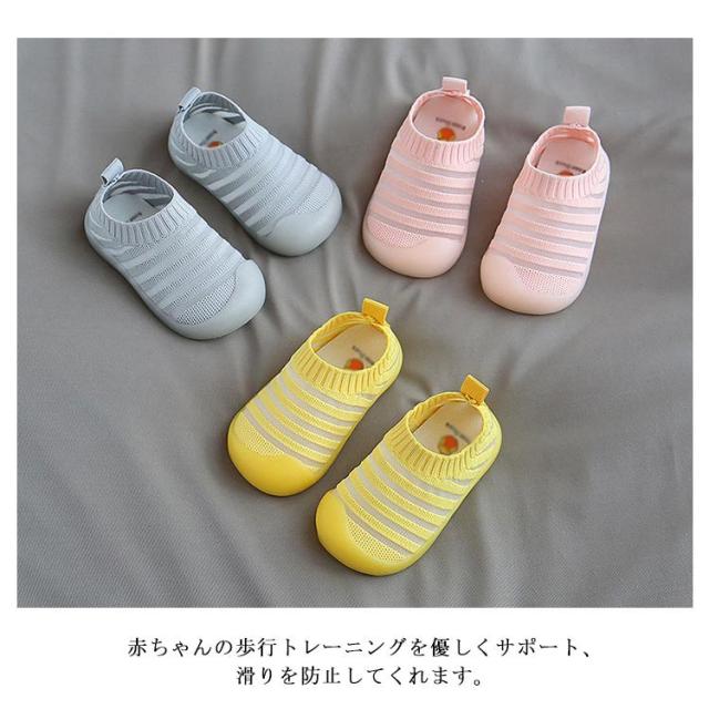 | メッシュで涼しく履きやすいズソックスシューズ。 軽量で柔らかいので、靴を履くのを嫌がる赤ちゃんでも履きやすい。 通気穴があるので蒸れにくく、夏でも楽に過ごせます。 赤ちゃんの歩行トレーニングを優しくサポート、滑りを防止してくれます。 シューズ先部分の広い空間は足の指の動きをスムーズにできるようにし、成長発育と認知発達によい! 部屋履きだけでなく、外履きとしてもご利用頂けます。 | |