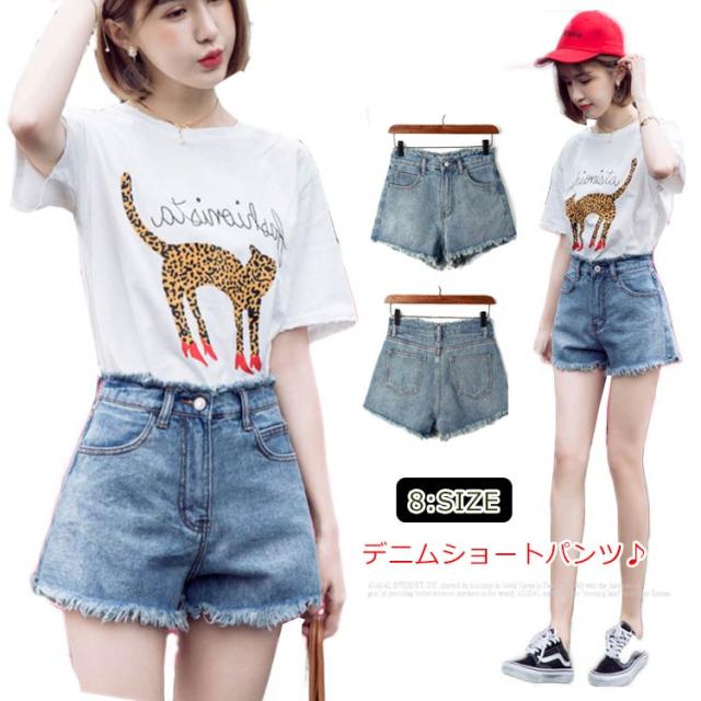 デニム ショートパンツ レディース 切りっぱなし デニムパンツ ショーパン ゆったり ハイウエスト セクシー 短パン ジーンズ 裾フリンジ ショートパンツ 送料無料