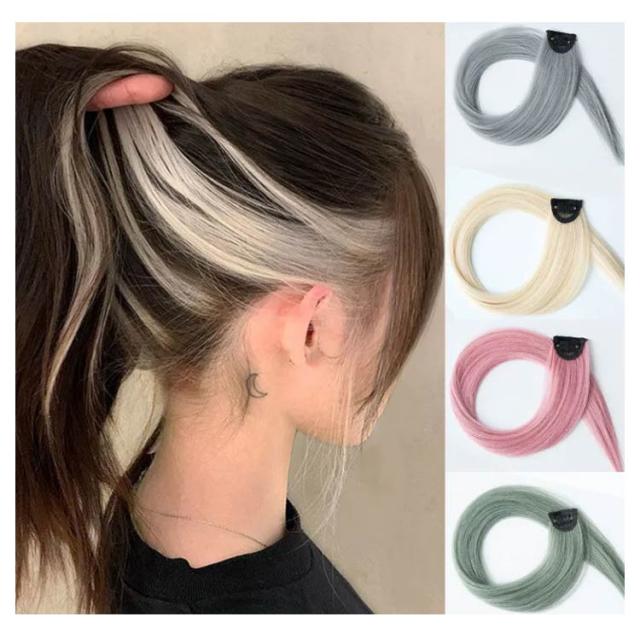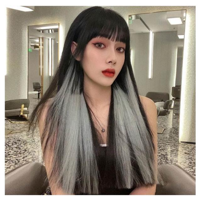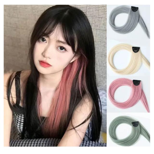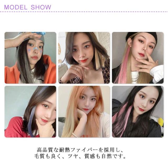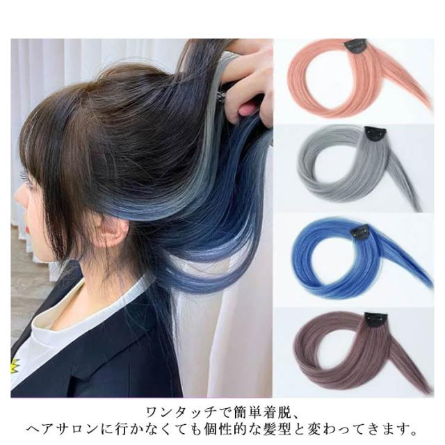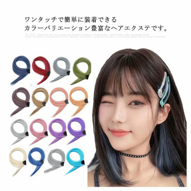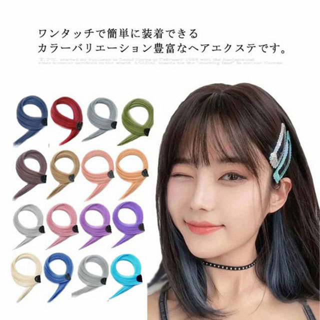 エクステ 2枚セット ワンタッチ メッシュ ウィッグ ロング 全18色 ストレート グラデーション カラーエクステ つけ毛 エクステンション ライブ 前髪 グレー ピンク イエロー ブルー グリーン パープル 送料無料
