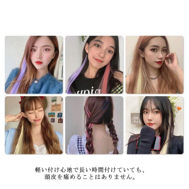 | ワンタッチで簡単に装着できるカラーバリエーション豊富なヘアエクステです。 高品質な耐熱ファイバーを採用し、毛質も良く、ツヤ、質感も自然です。 軽い付け心地で長い時間付けていても、頭皮を痛めることはありません。 50cmの長さは、自分の髪に合わせて長さを調節できます。 ワンタッチで簡単着脱、ヘアサロンに行かなくても個性的な髪型と変わってきます。 お洒落な18カラー展開、お好みにあわせてお選びいただけます。 | |