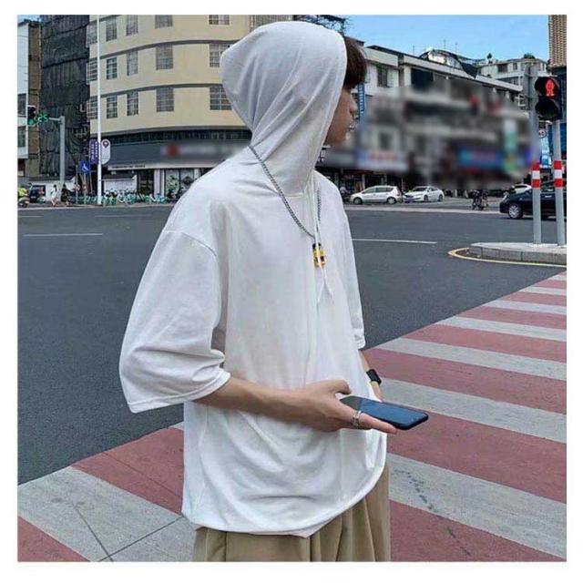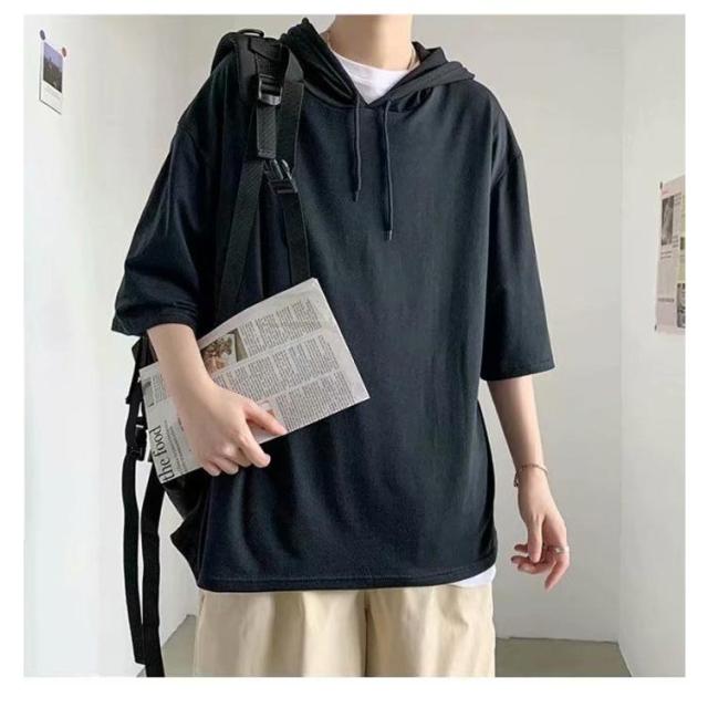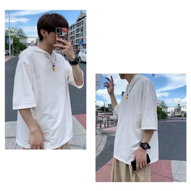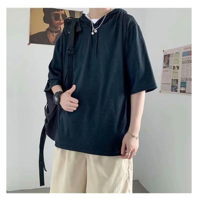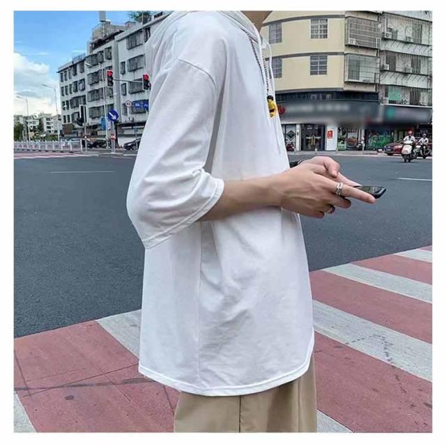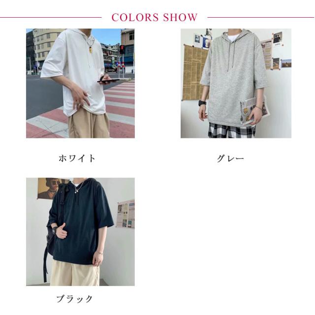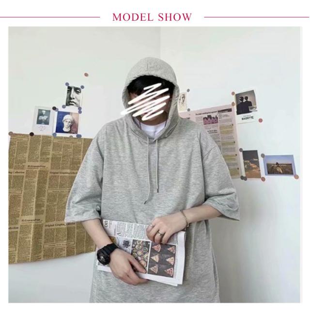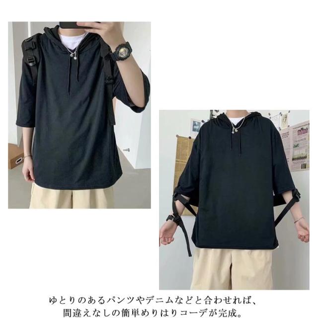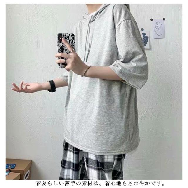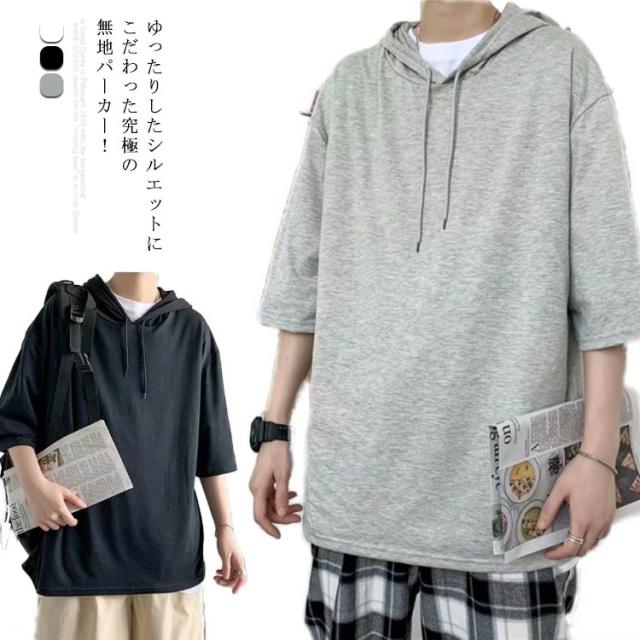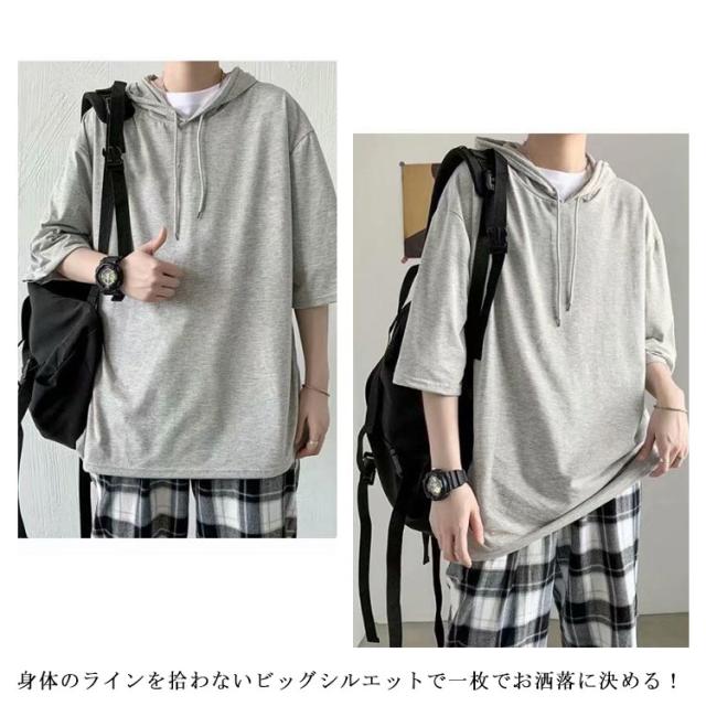 パーカー メンズ 半袖パーカー 5分袖 Tシャツ パーカー プルオーバー フード付き 半袖パーカー プルオーバーパーカー カットソー トップス プルオーバー 大きいサイズ 体型カバー
