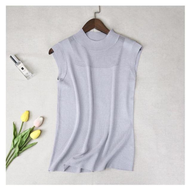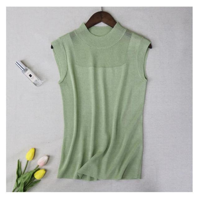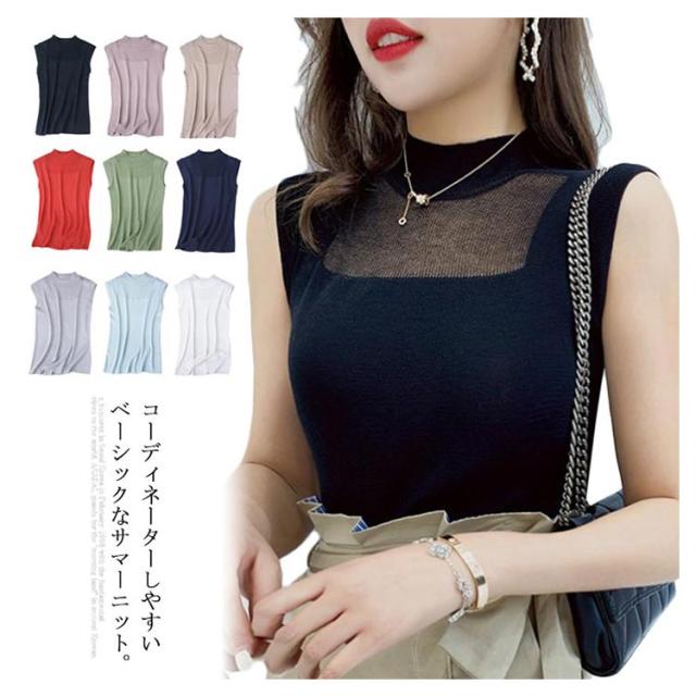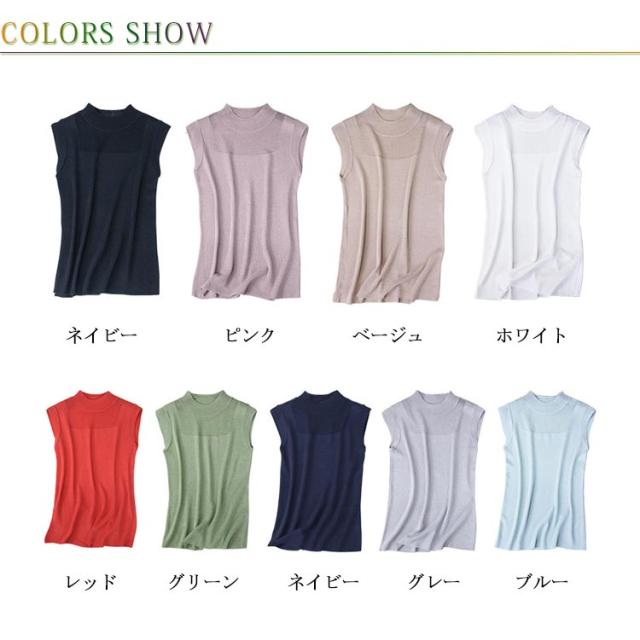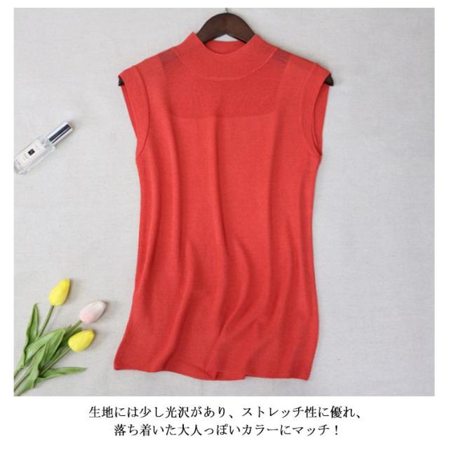 無地カットソー 無地tシャツ ノースリーブ 袖なし ハイネック ニット インナー ストレッチ トップス タンクトップ プリーツ レディース シンプル 大人 フィット 送料無料 タートルネック シンプル 通勤 秋冬春