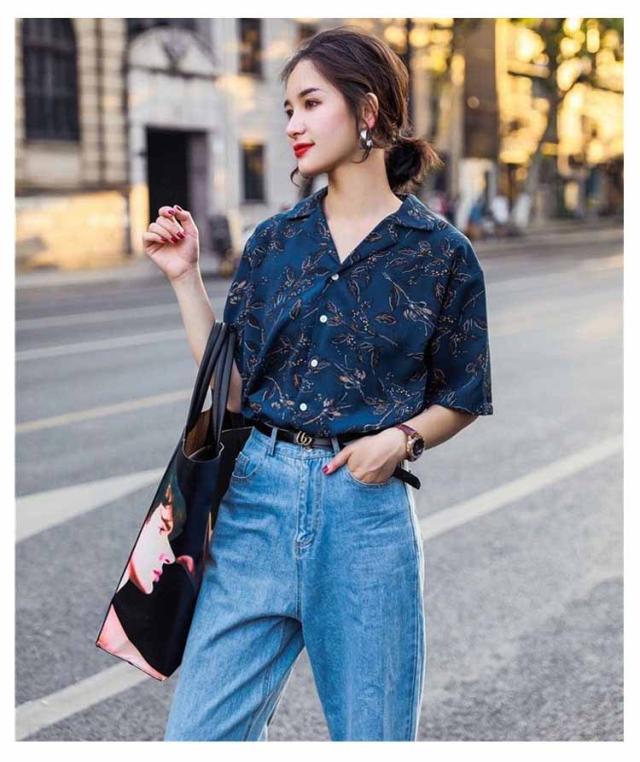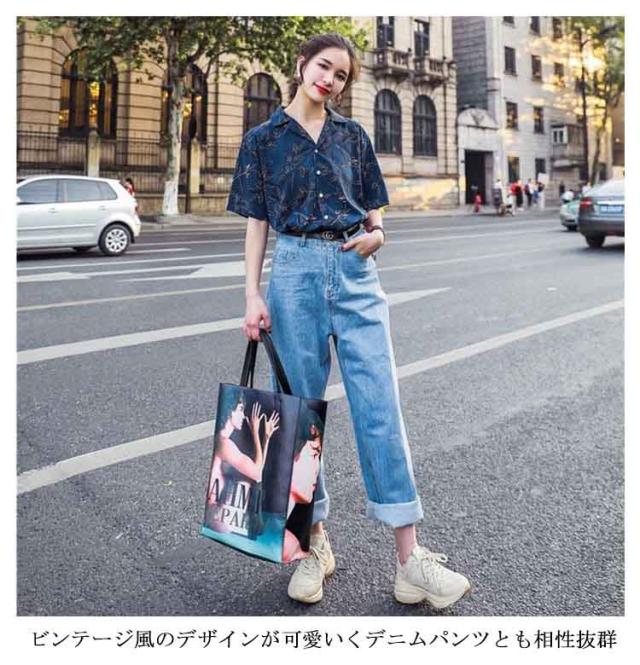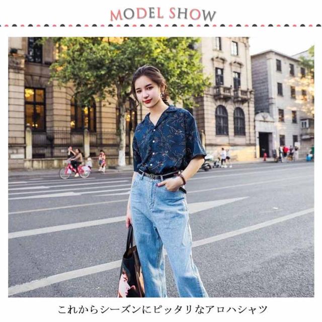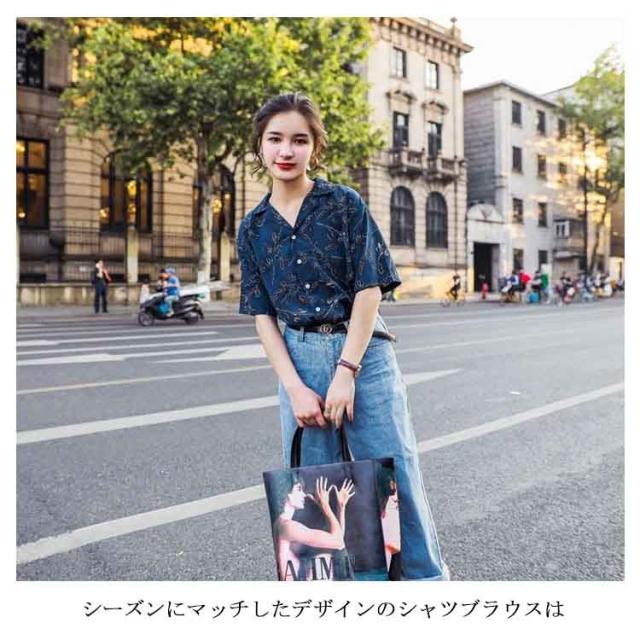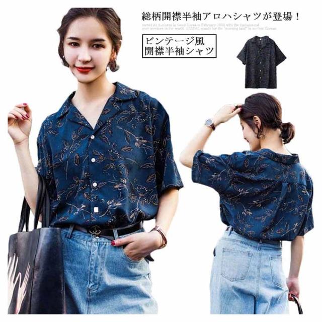 総柄シャツ 半袖シャツ 開襟半袖シャツ アロハシャツ レディース ブラウス 総柄 花柄 柄シャツ 派手 可愛い Vネック ブラウス