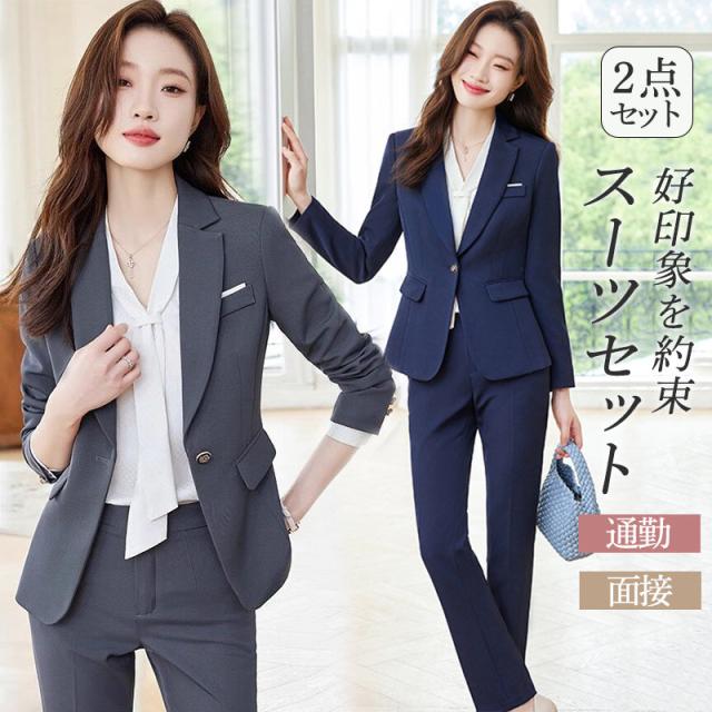 スーツセット レディース ビジネススーツ パンツセット 事務服 2点セット 着痩せ フォーマル オフィス 春秋新作 大人かわいい