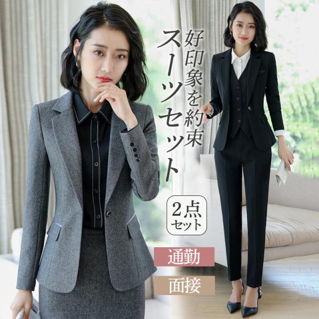 スーツセット レディース パンツセット スカートセット ビジネススーツ 事務服 2点セット 着痩せ フォーマル オフィス 春秋新作