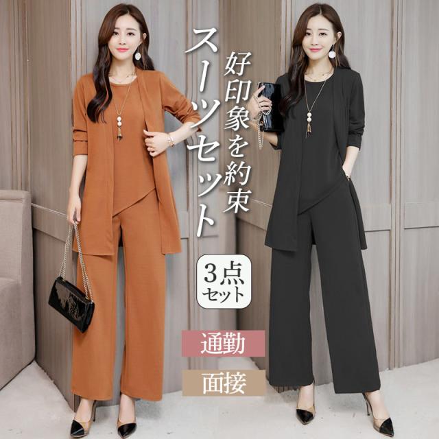 スーツセット レディース ビジネススーツ パンツセット 事務服 3点セット 着痩せ フォーマル オフィス 春秋新作 大人かわいい
