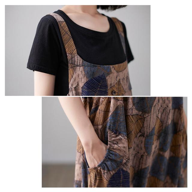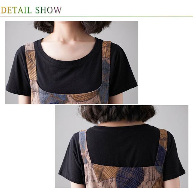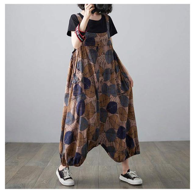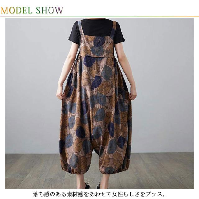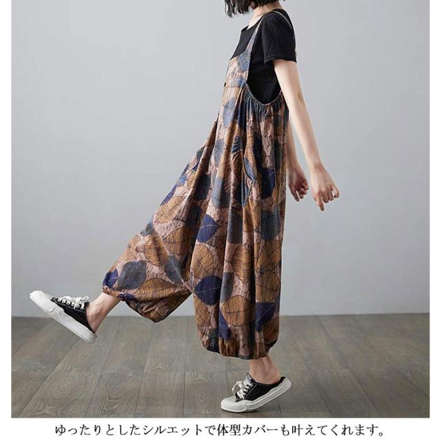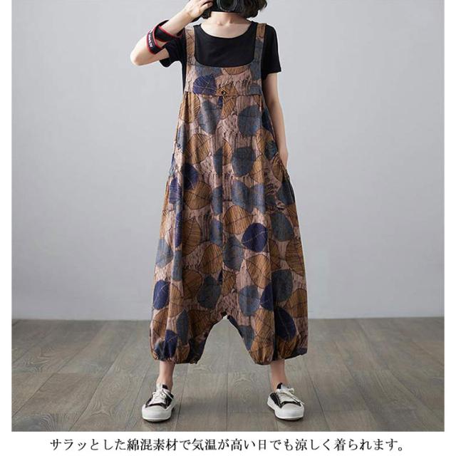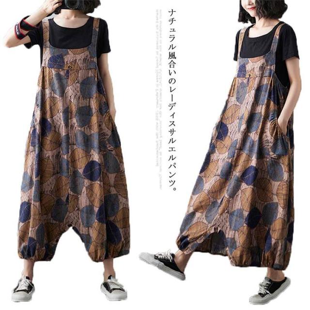 【送料無料】サロペット パンツ オールインワン サルエルパンツ 大きいサイズ ボトムス レディース オーバーオール 綿混 春夏 植物柄 ロング丈 ゆったり シンプル カジュアル ノースリーブ 大人 パンツ