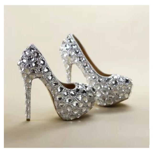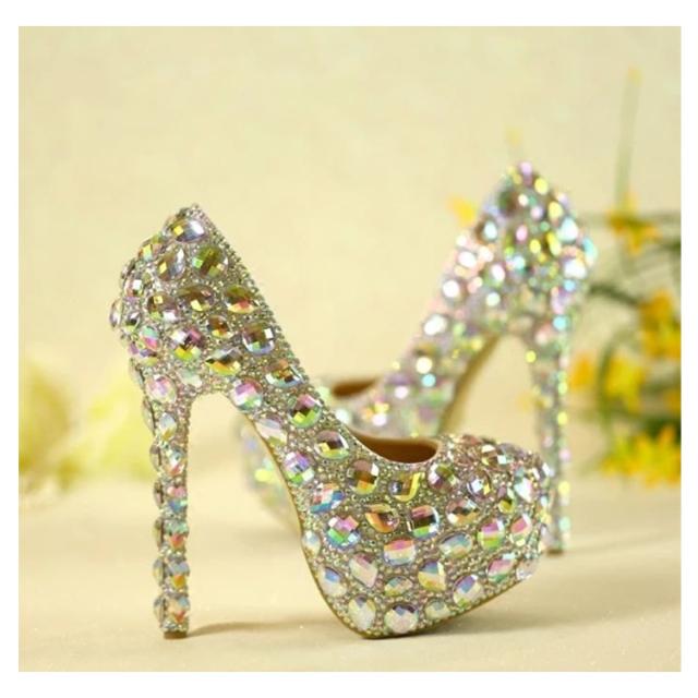 ラインストーンパンプス ラインストーンシューズ レディース靴 金 銀 赤 五彩 ピンク ハイヒール パンプス ラインストーン ウェディングシューズ 美脚 フラットシューズ