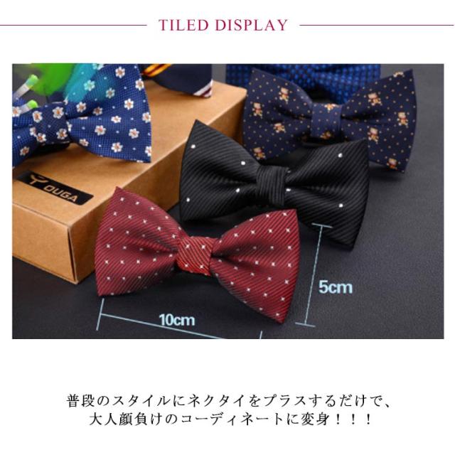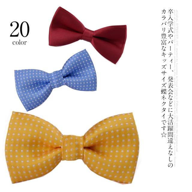 | 卒入学式やパーティー、発表会などに大活躍間違えなしのカラバリ豊富なキッズサイズ蝶ネクタイです☆ 簡単に付けれるからママもラクちん! 首周りは伸縮するゴム素材のアジャスターで、サイズ調整もラクラクです♪ 普段のスタイルにネクタイをプラスするだけで、大人顔負けのコーディネートに変身!!! プレゼントにもおススメの蝶ネクタイです。 | |