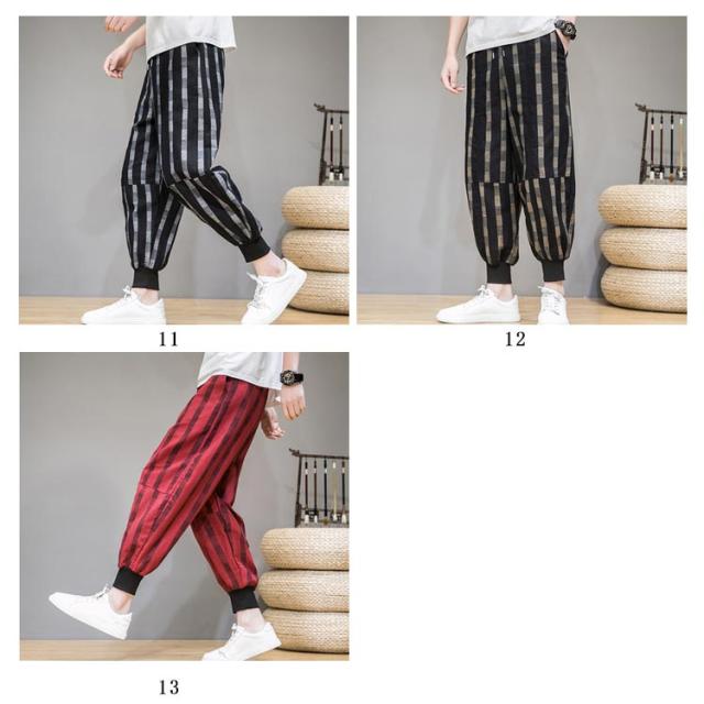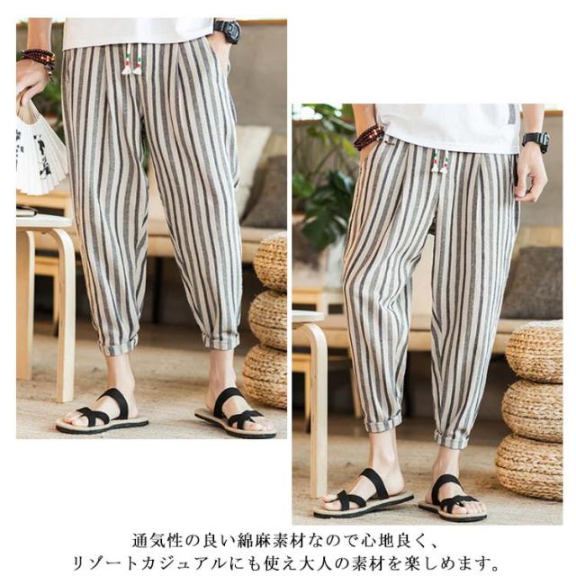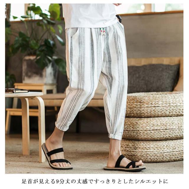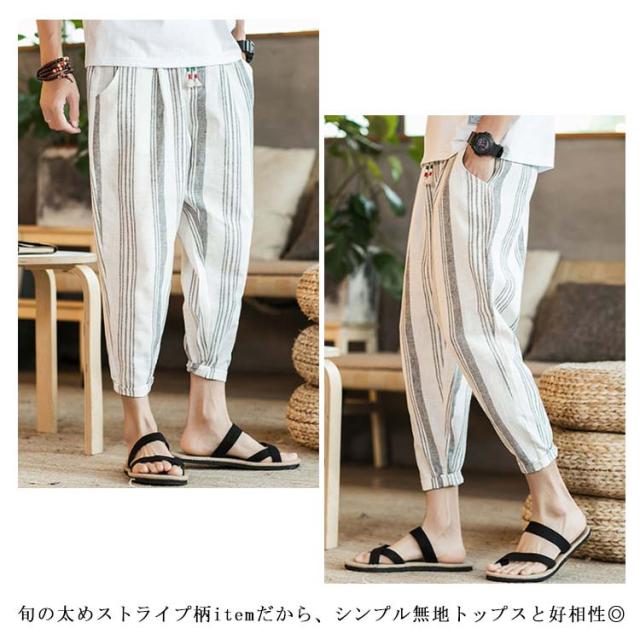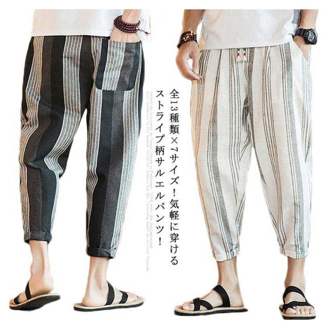 全13種類×7サイズ!サルエルパンツ メンズ 綿麻 パンツ ストライプ柄 リネンパンツ 綿麻パンツ リネン 9分丈パンツ サルエル ワイドパンツ 麻混 春夏 大きサイズ メンズファッション