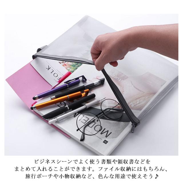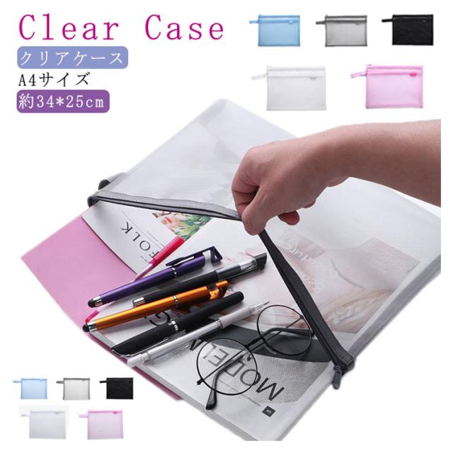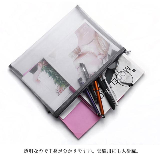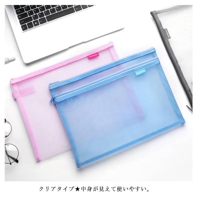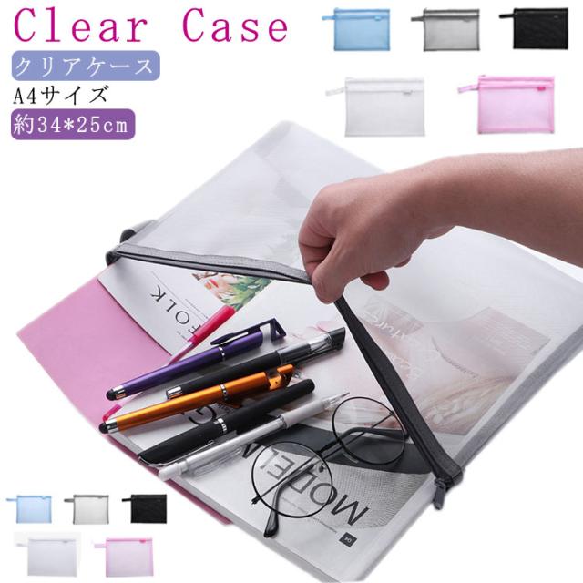 メッシュケース ファスナー付 A4 クリアファイル メッシュ クリアケース 書類 ファスナーケース ジップケース ファイルケース メッシュポケット ポケットファイル トラベルポーチ ファイル ポケット 書類整理 学生 オフィス用品 学校 文房具 事務用品 送料無料