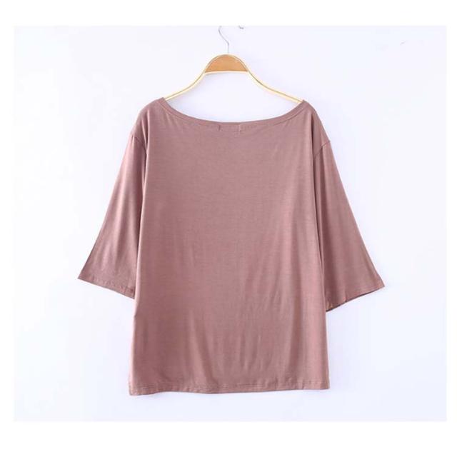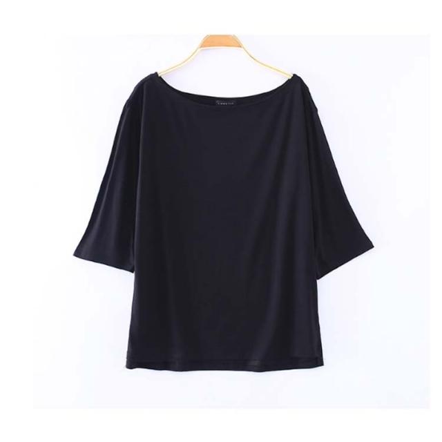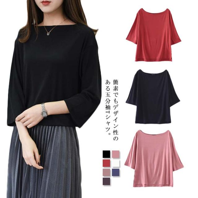 送料無料 Tシャツ レディース 五分袖Tシャツ オフショルダー 鎖骨見せ 薄手 無地 カジュアル シンプル 伸縮性 ストレッチ キレイめ カットソー 体型カバー プルオーバー トップス 春 夏 新作