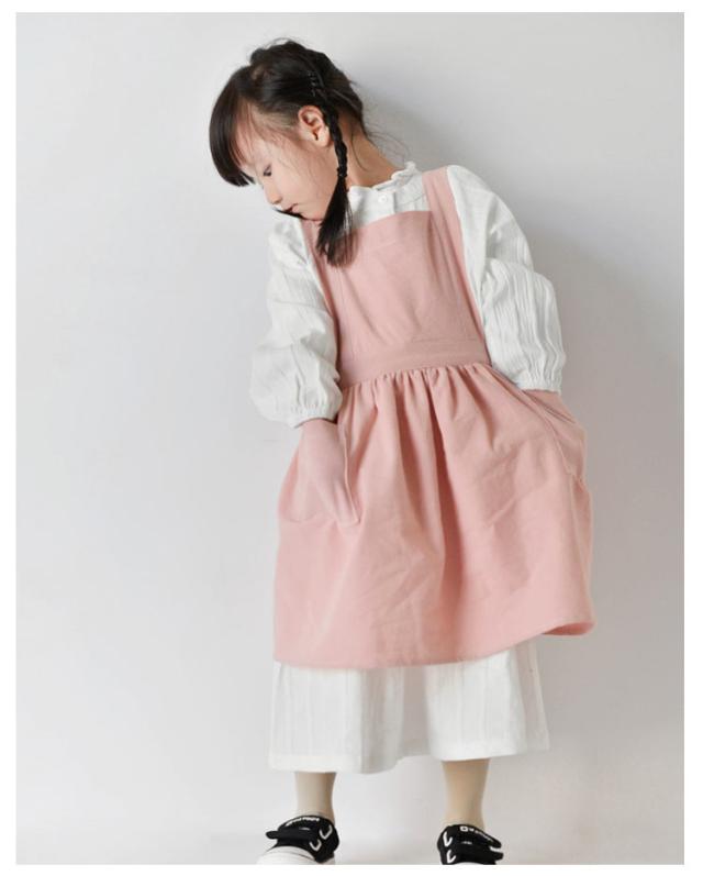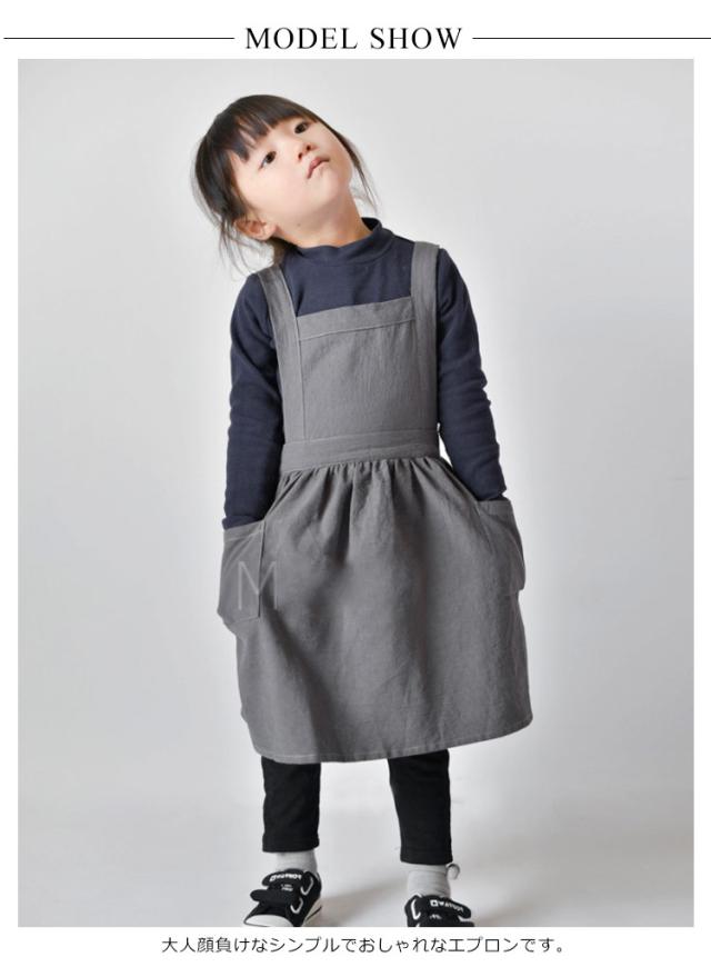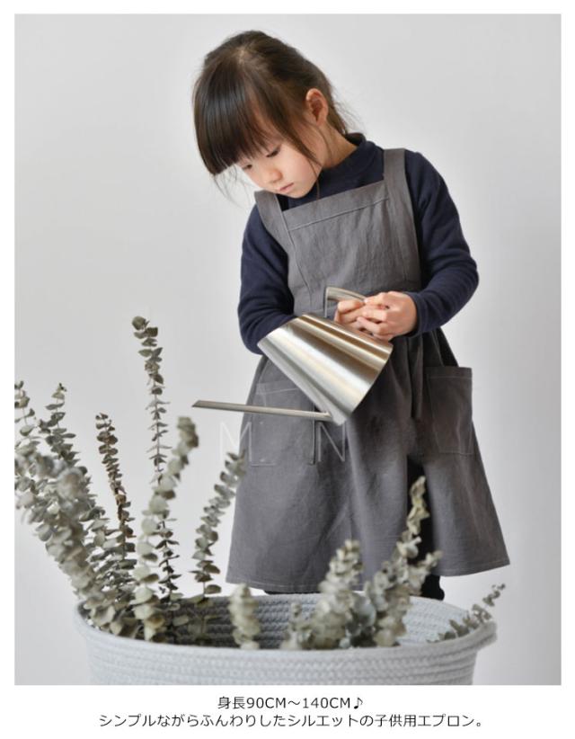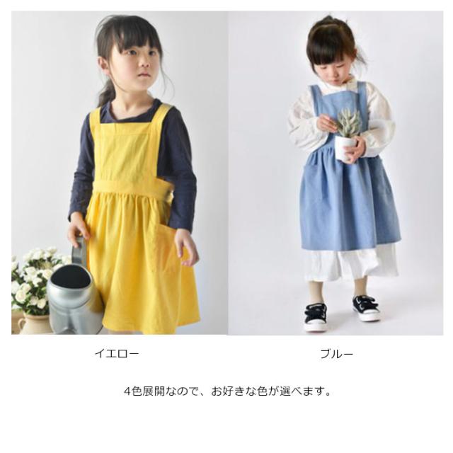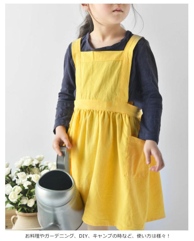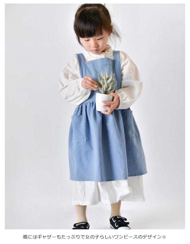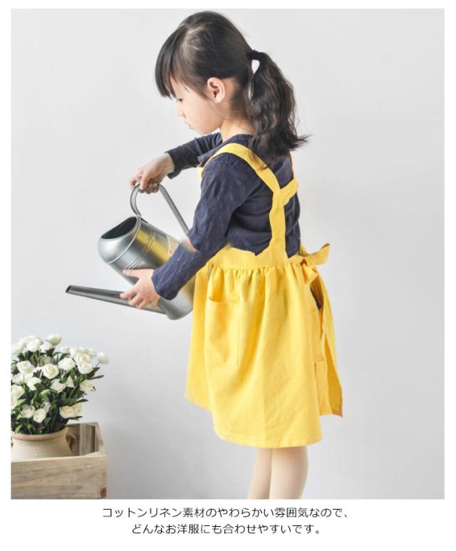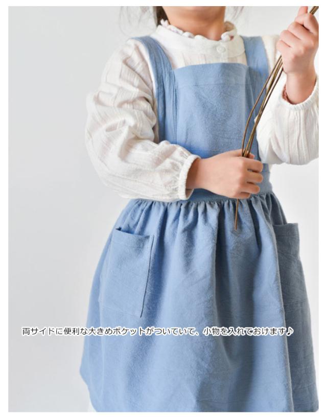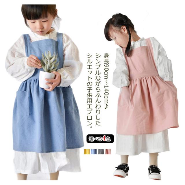 送料無料 子供用 エプロン おしゃれ 身長90cm〜140cmキッズ ロング 綿麻エプロン ワンピース かわいい ゆったり 軽量 無地 コットンリネン ポケット付き クッキング キッズ 保育園 幼稚園 プレゼント