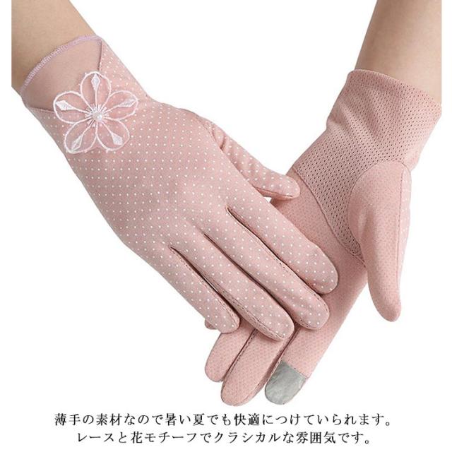 送料無料レース 手袋 レディース UV手袋 グローブ 五本指 ショート丈 薄手 接触冷感 清涼感 メッシュ 吸汗速乾 タッチパネル対応 紫外線対策 日焼け止め UVカット 滑り止め 運転 アウトドア リボン きれいめ おしゃれ 上品 ドライブ ガーデニング