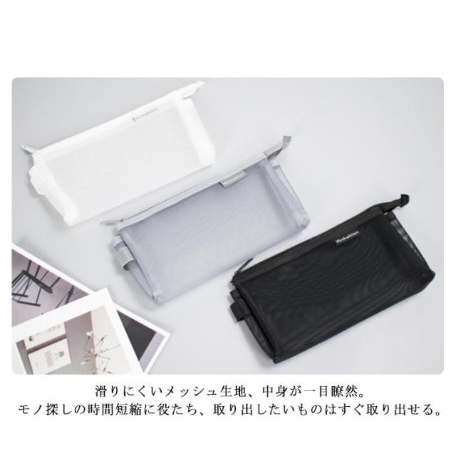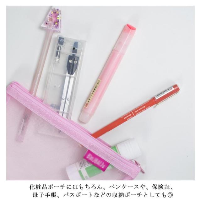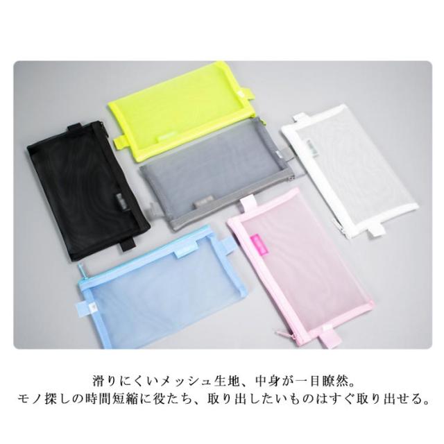 送料無料 全2タイプ メッシュケース A5サイズ メイクポーチ 小物入れ ペンケース バッグインバッグ トラベルポーチ 筆箱 化粧ポーチ 男女兼用 文房具収納